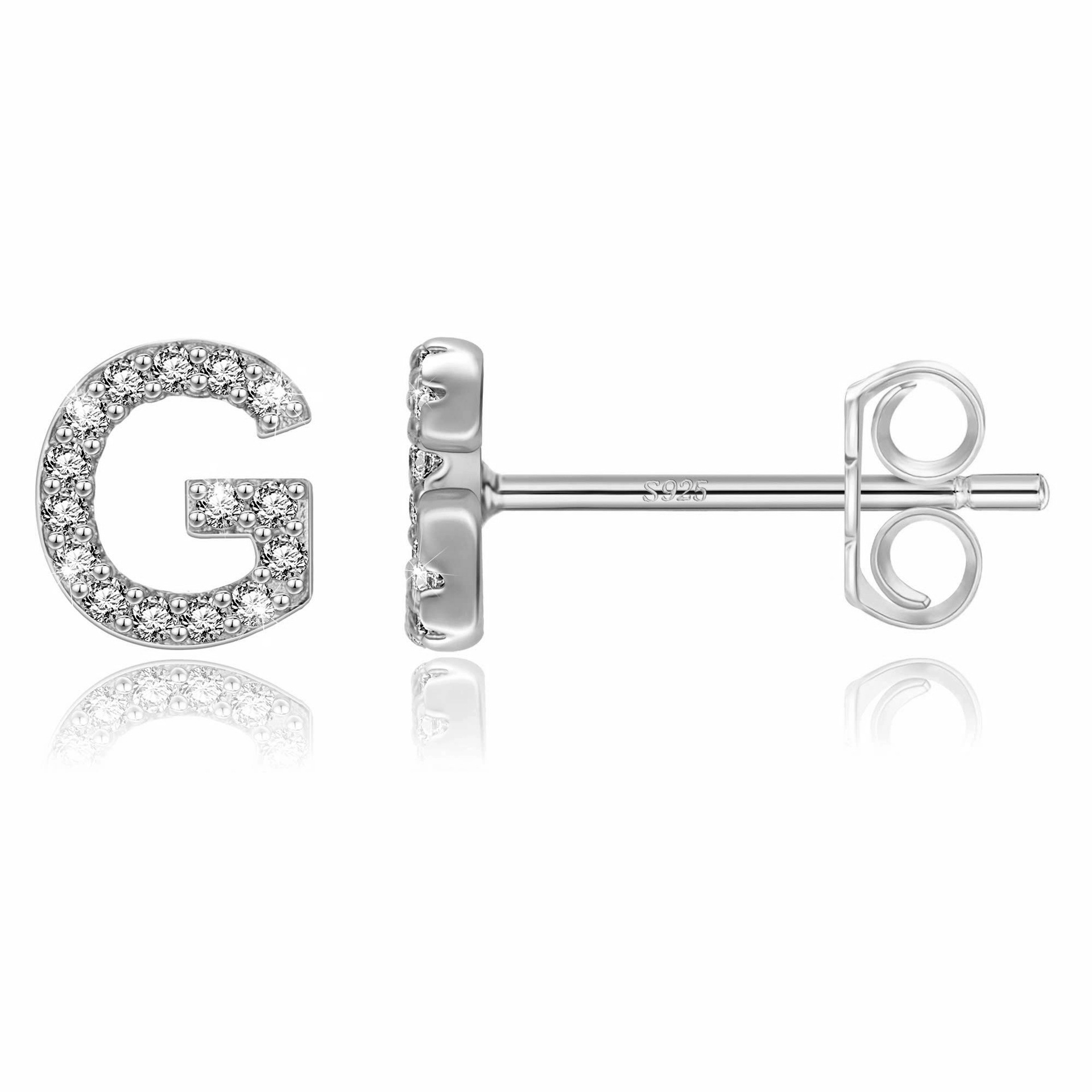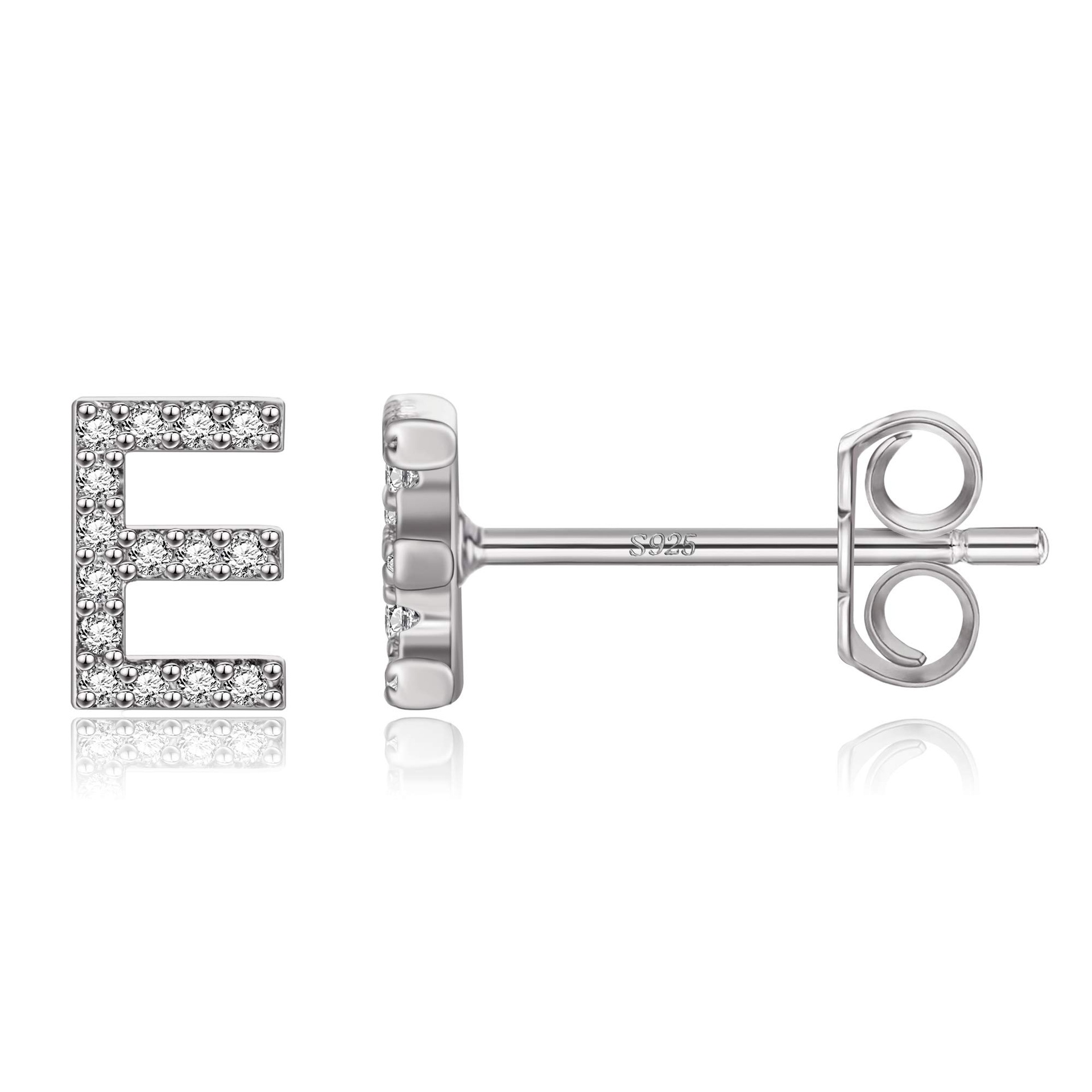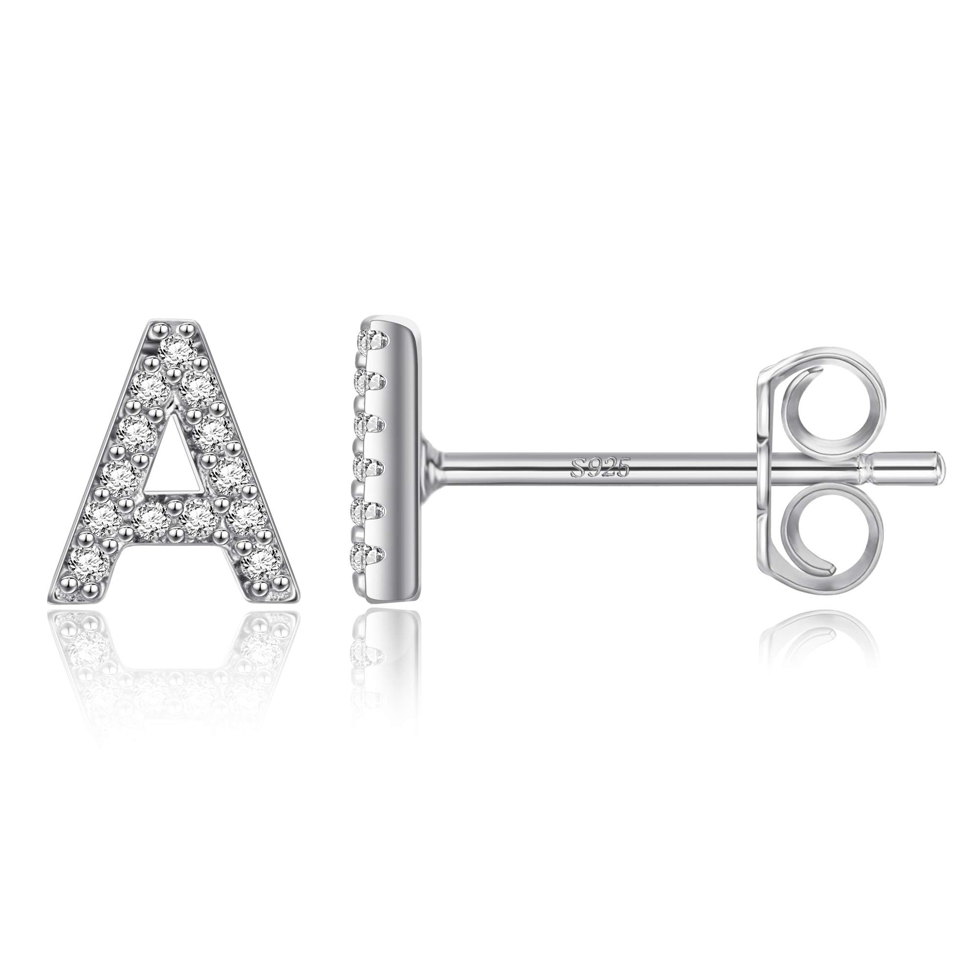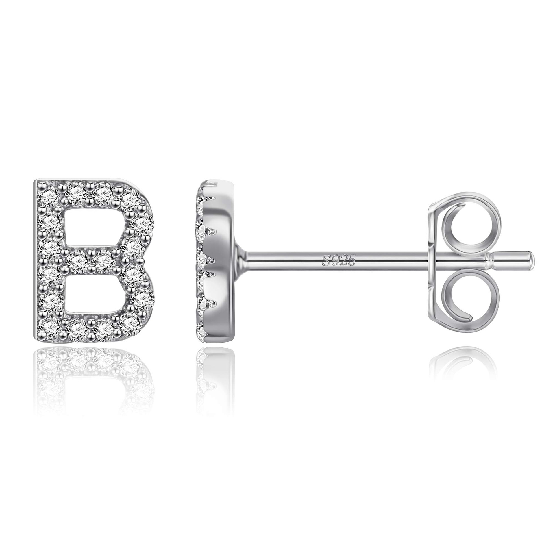 Simple Rhinestone Silver Needle English Alphabet Letter Earrings