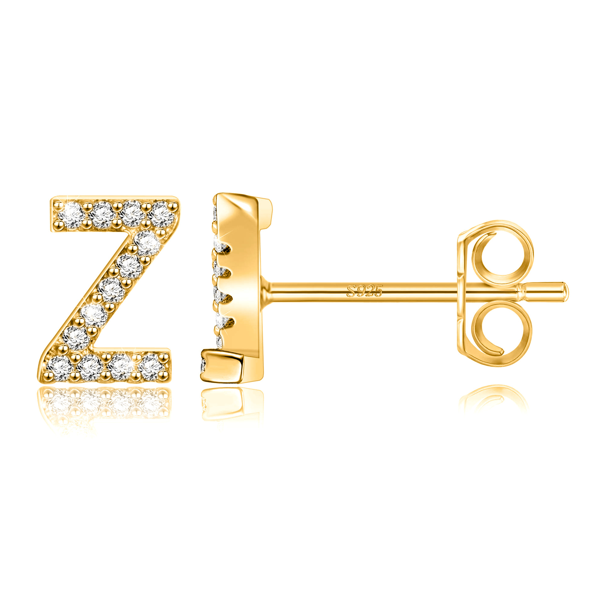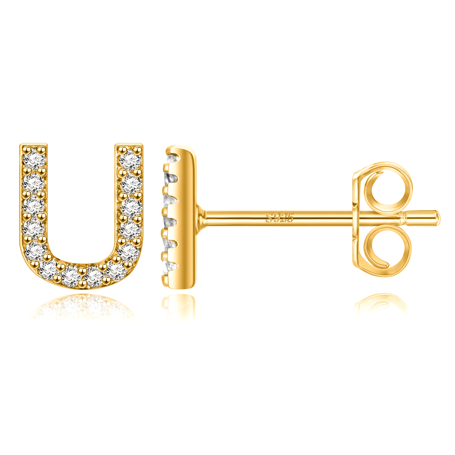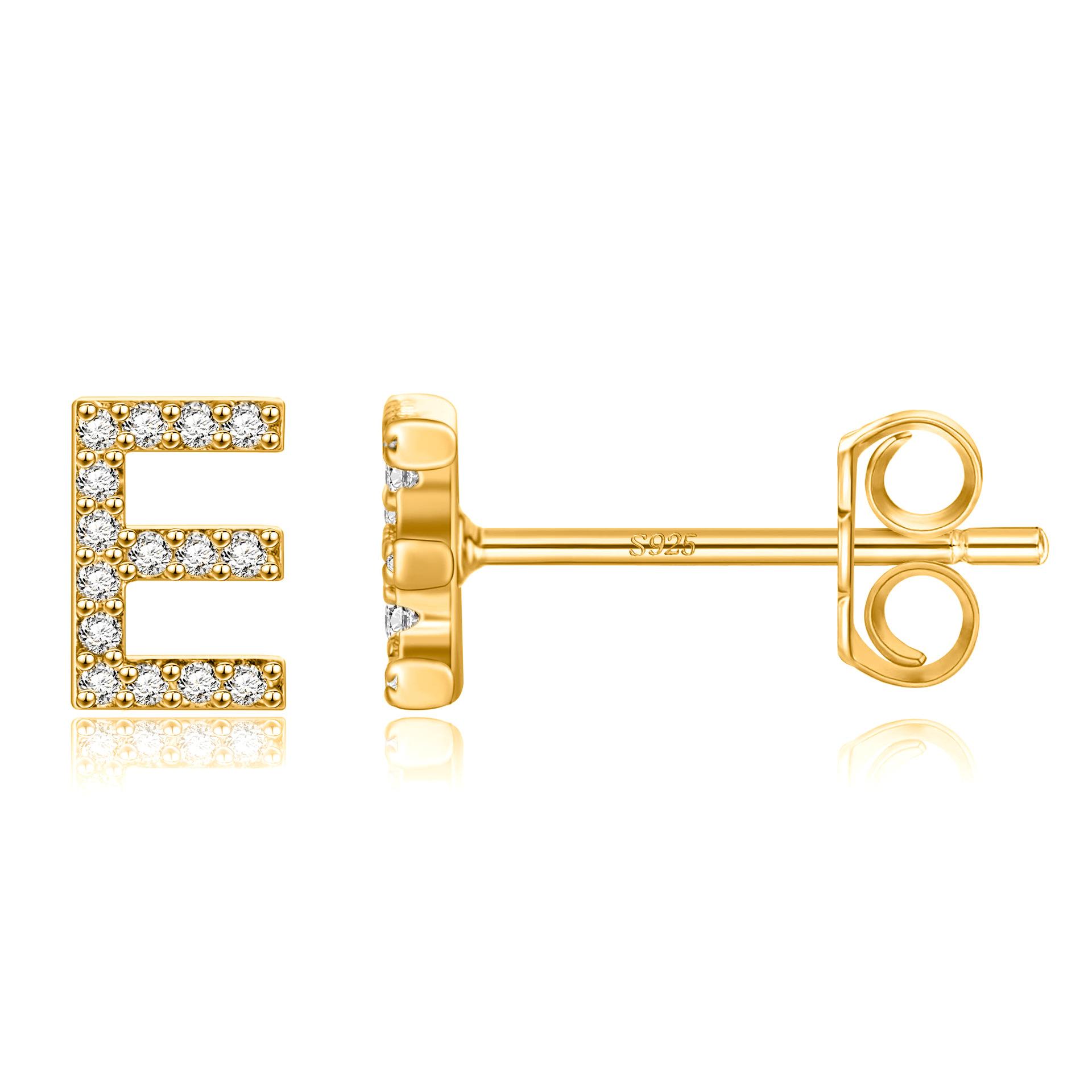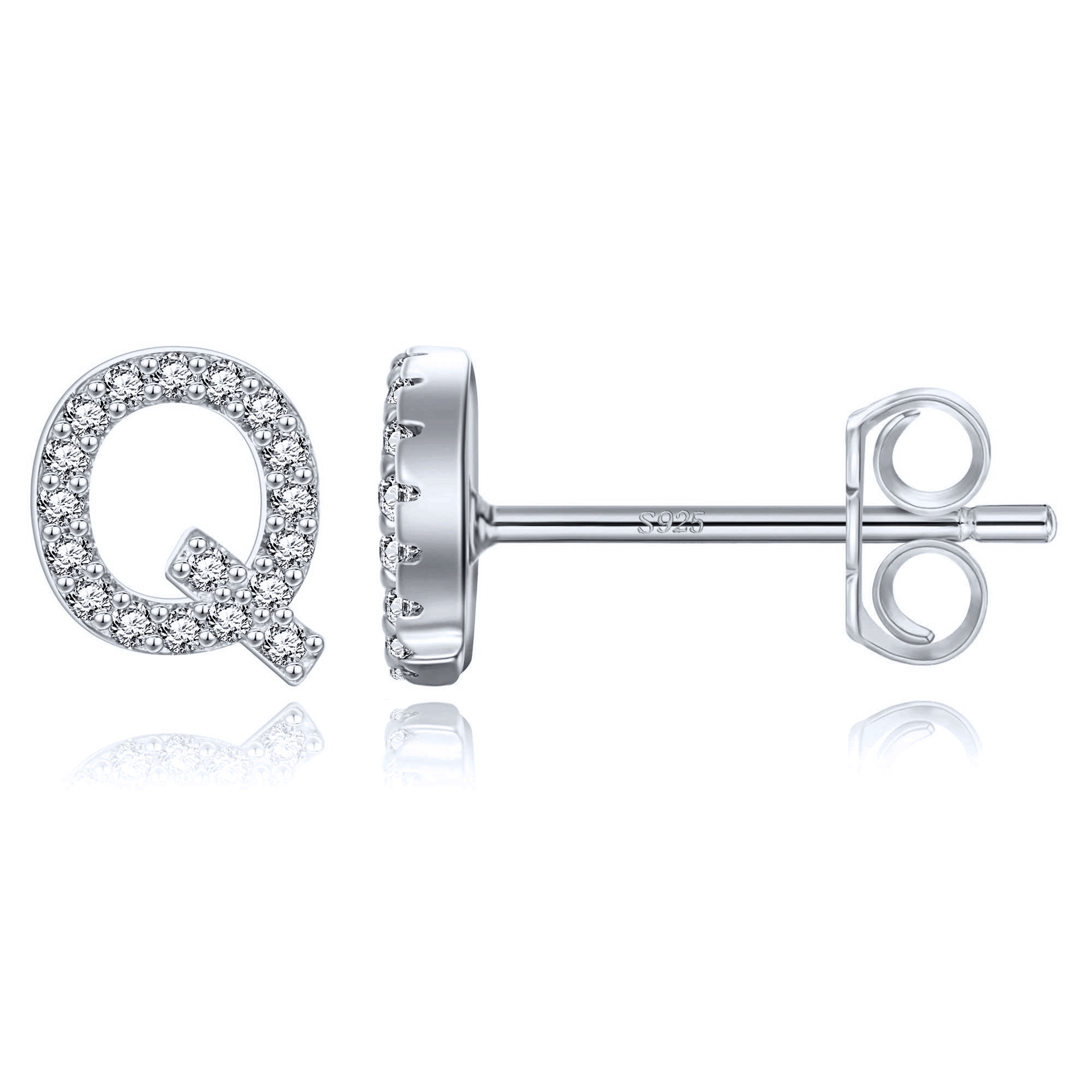 Simple Rhinestone Silver Needle English Alphabet Letter Earrings