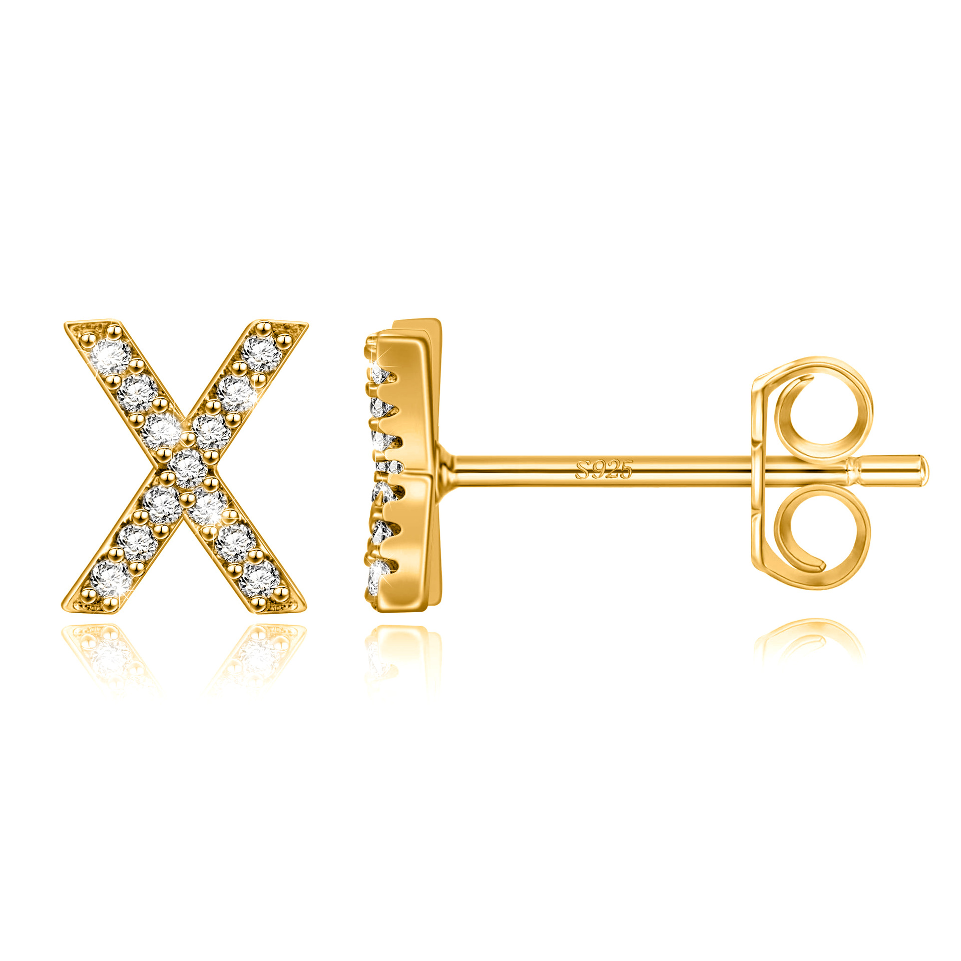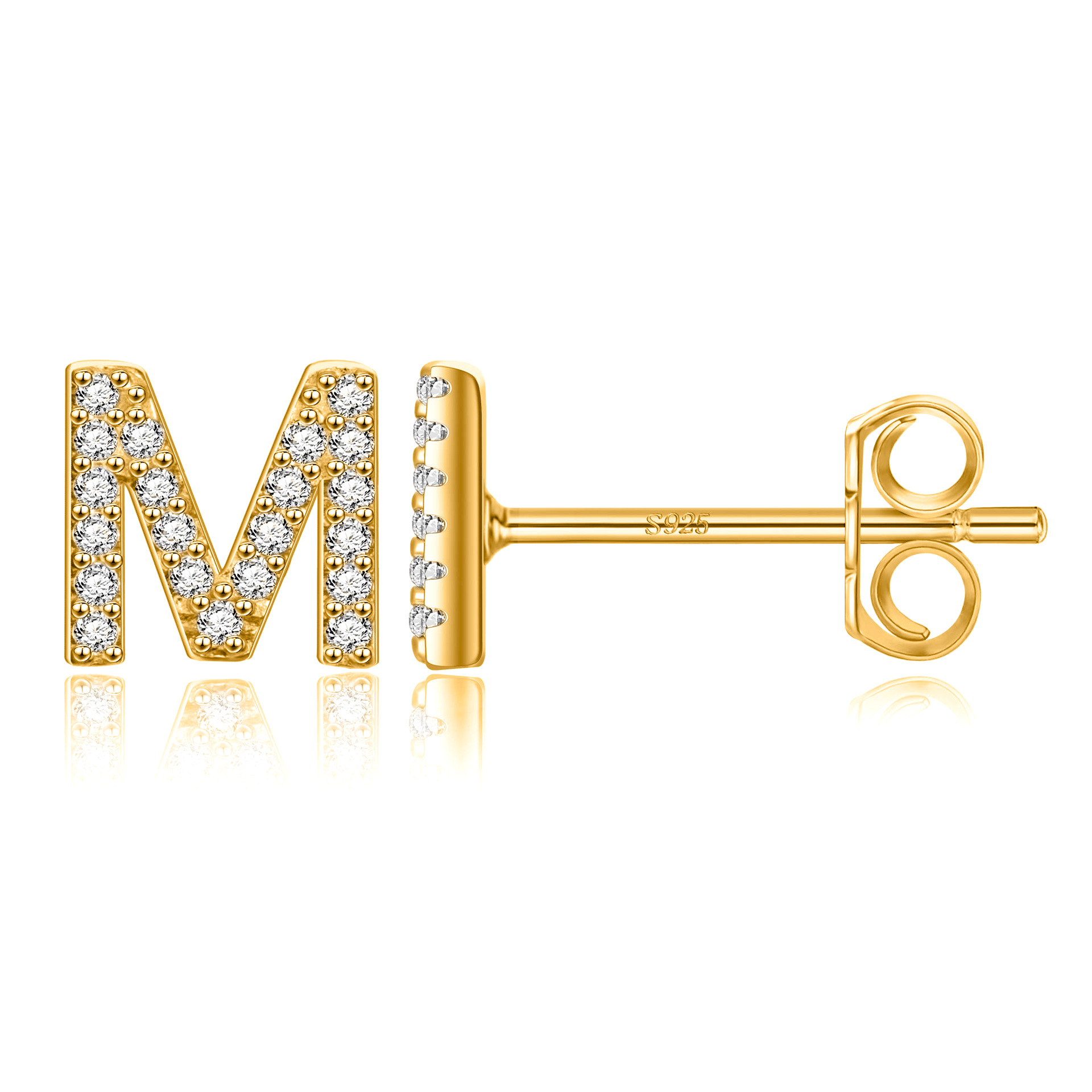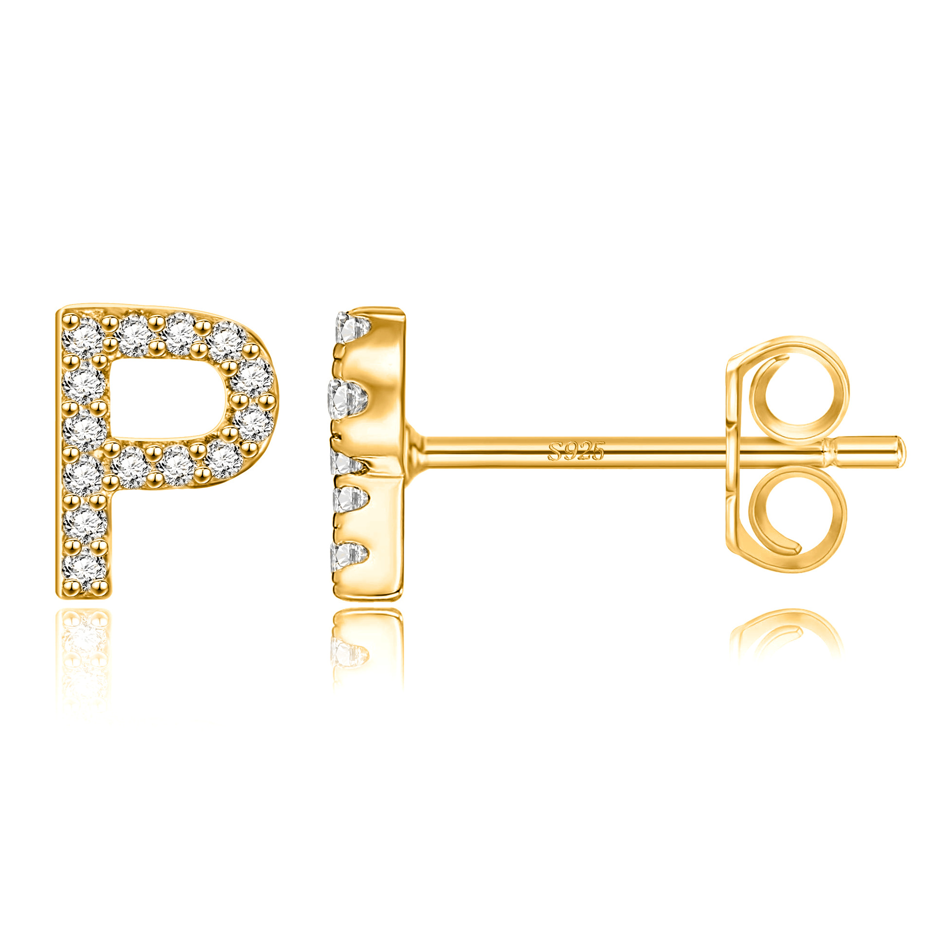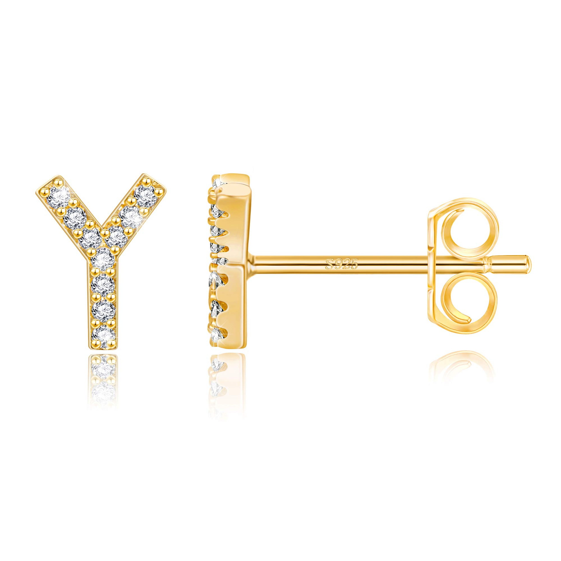 Simple Rhinestone Silver Needle English Alphabet Letter Earrings