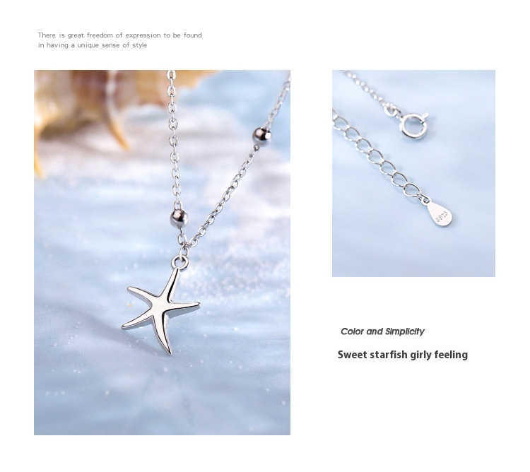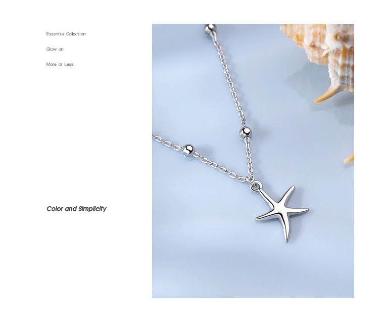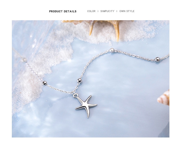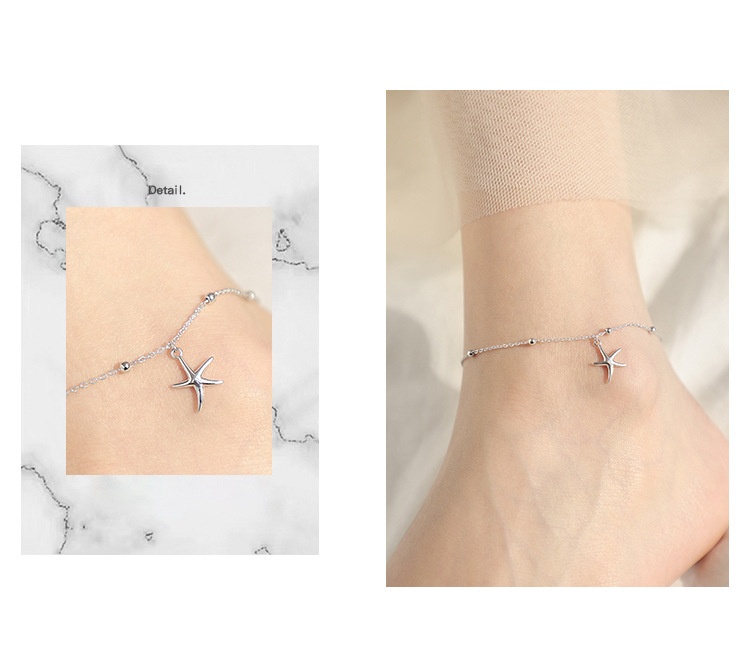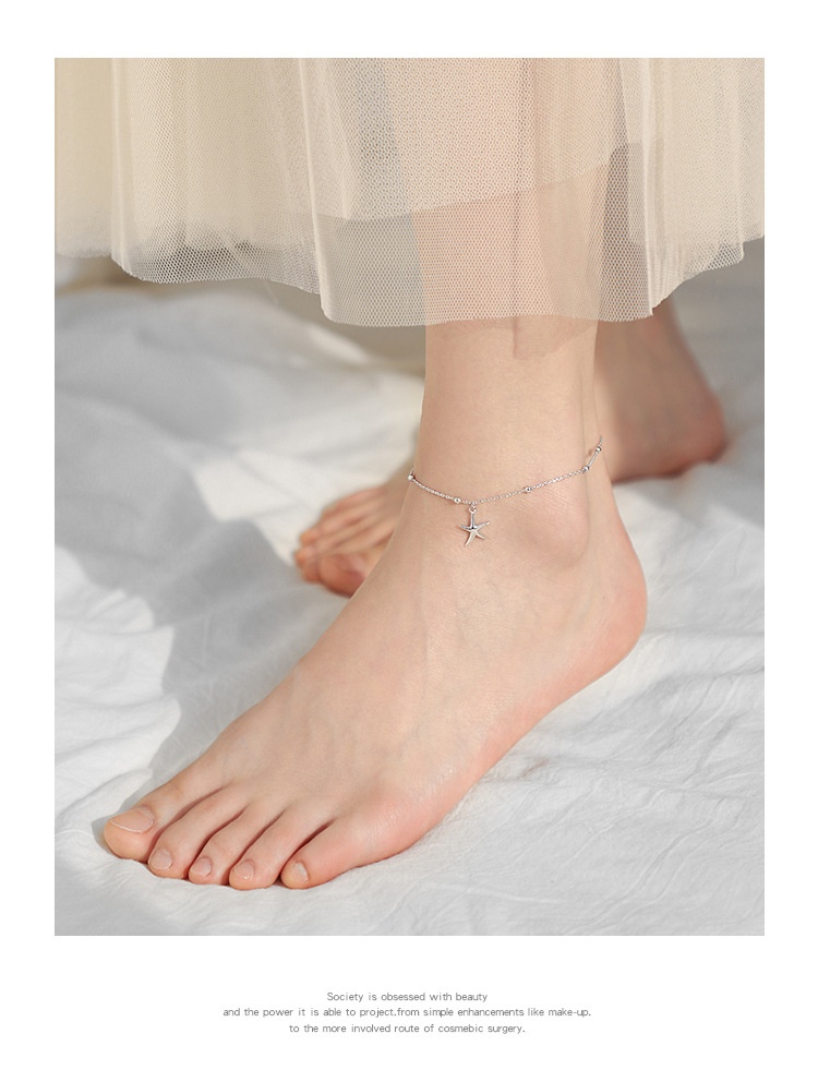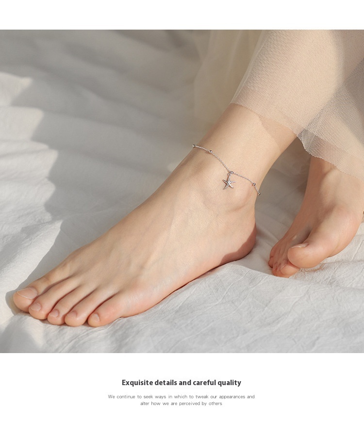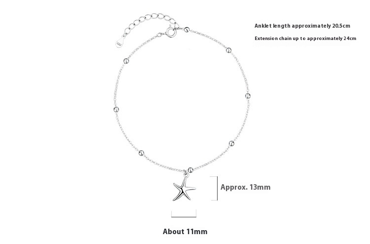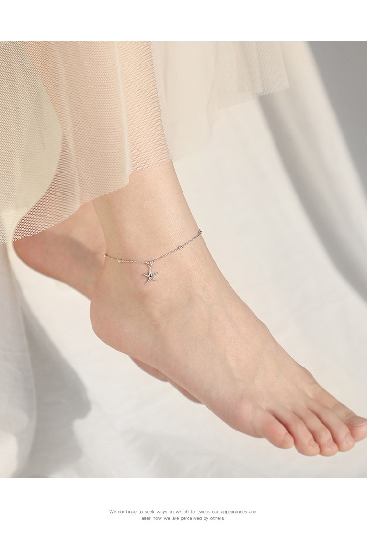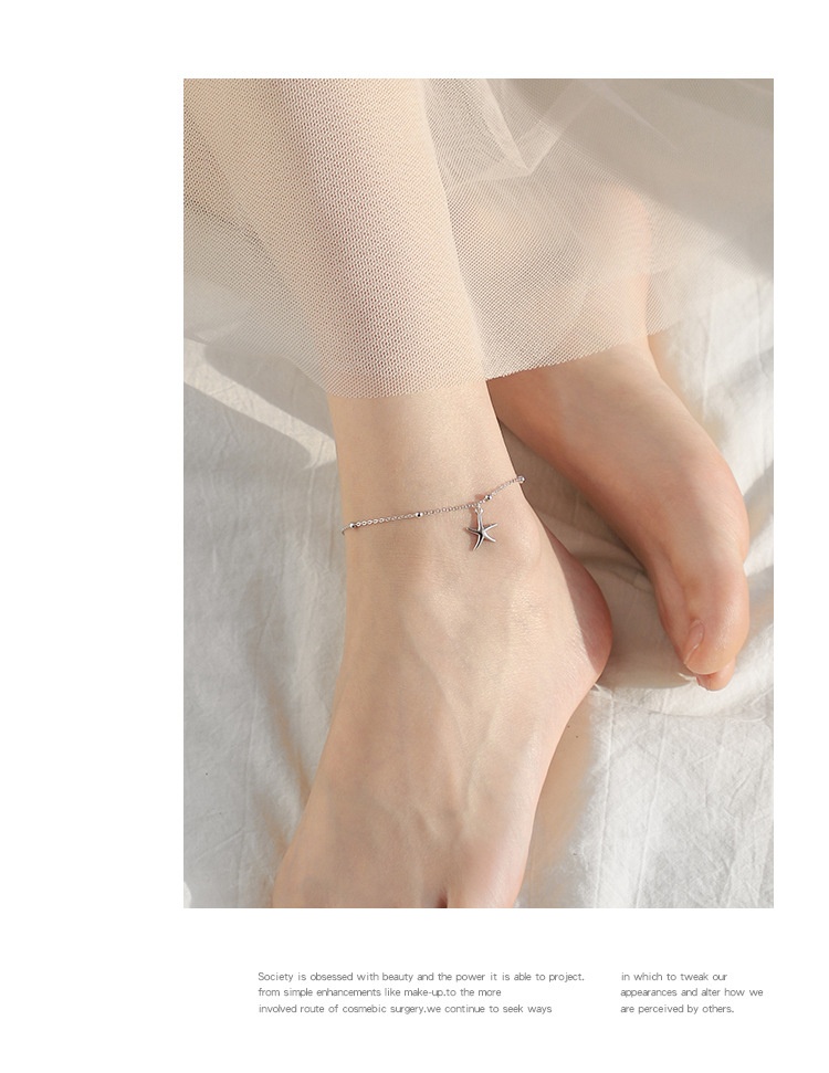 Simple Round Beads S925 Sterling Silver Cute Starfish Anklet