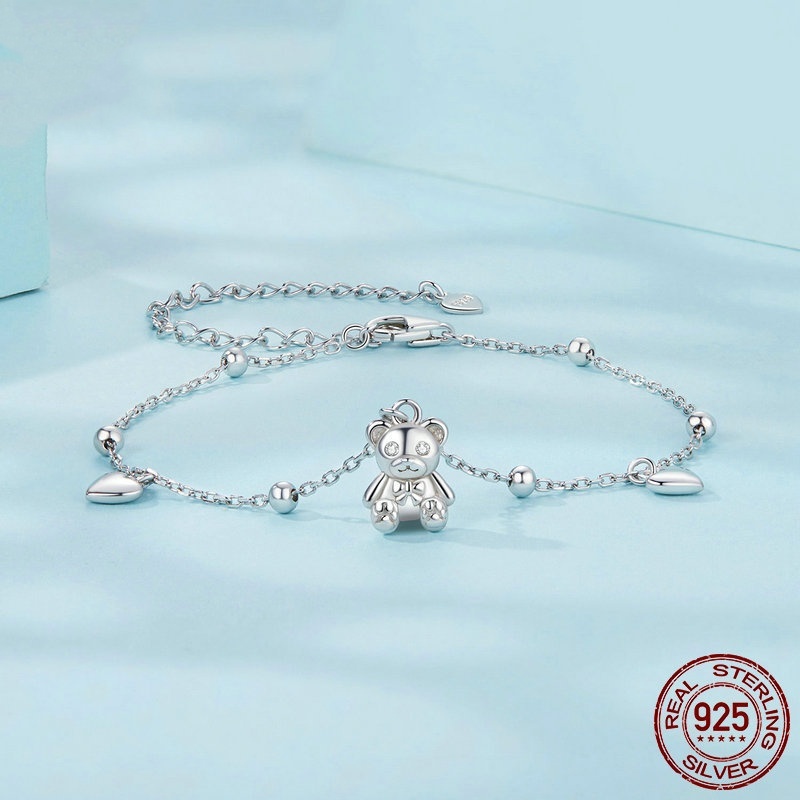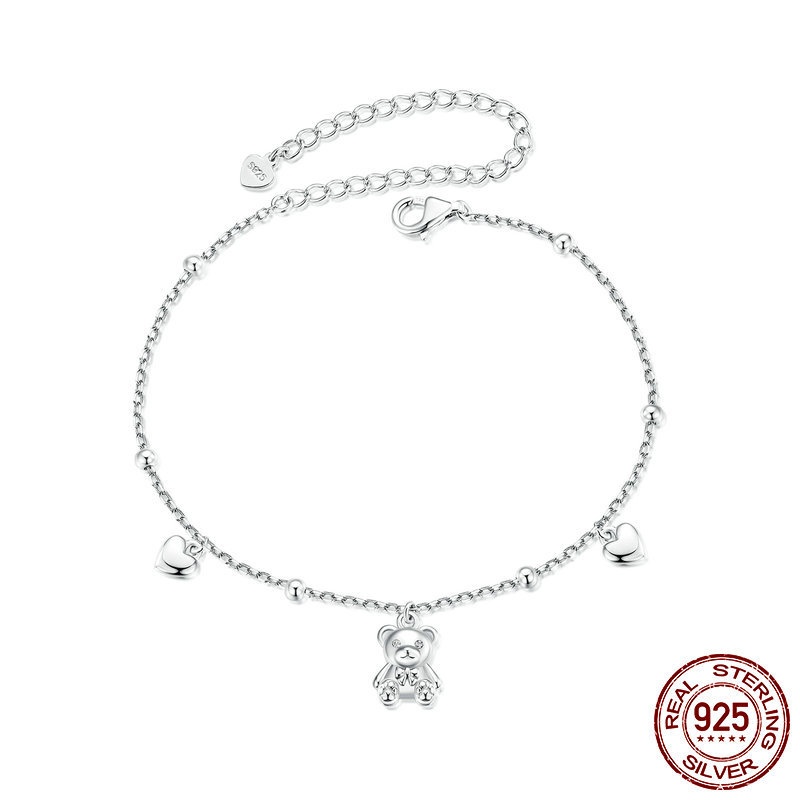 Simple S925 Loving Heart In Sterling Silver Bear Bracelet