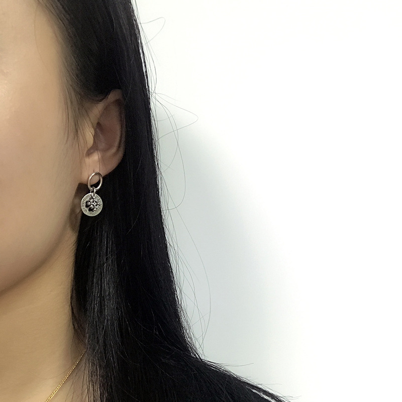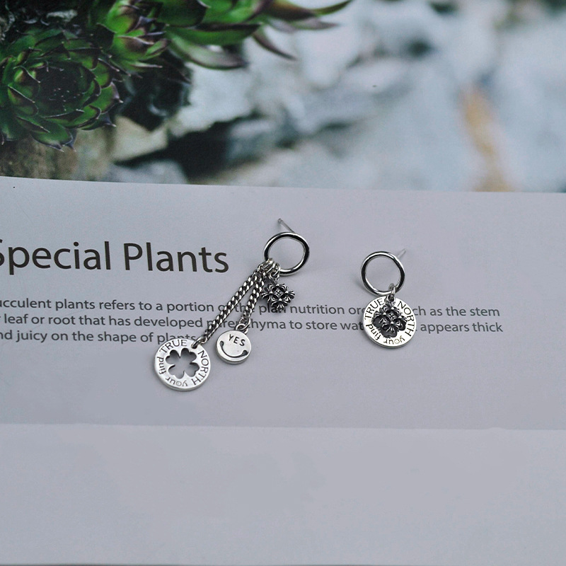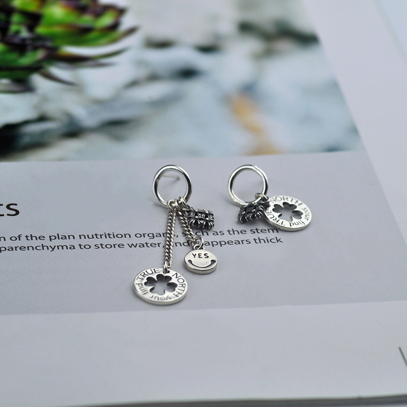 Simple S925 Sterling Silver Women's Geometric English Tag Earrings