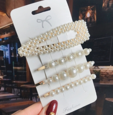 Simple Side Clip Girl Heart Pearl One Word Clip Bangs Clip Set