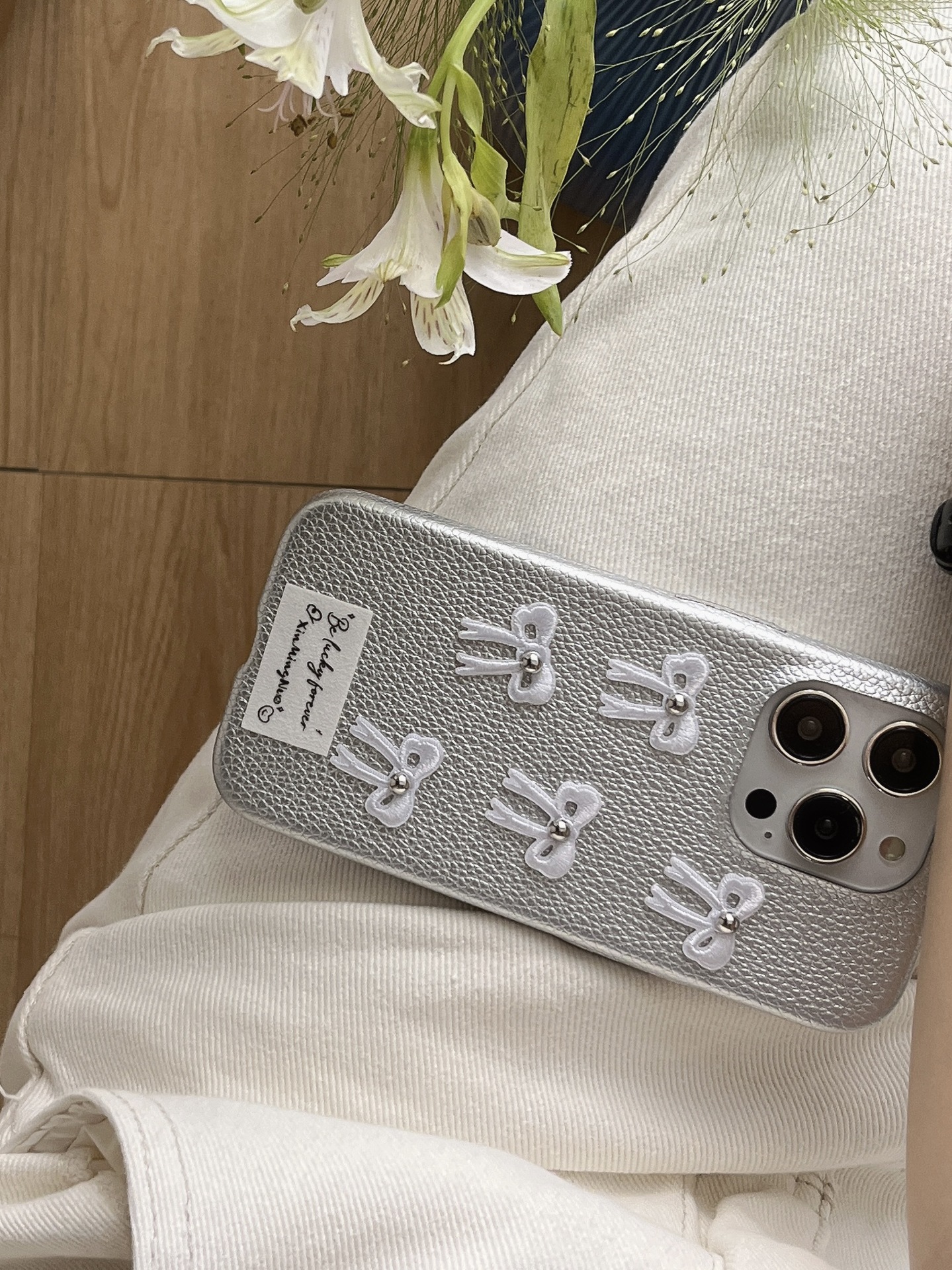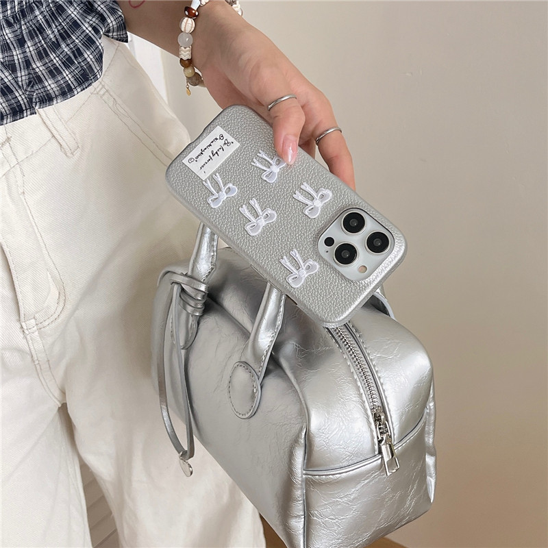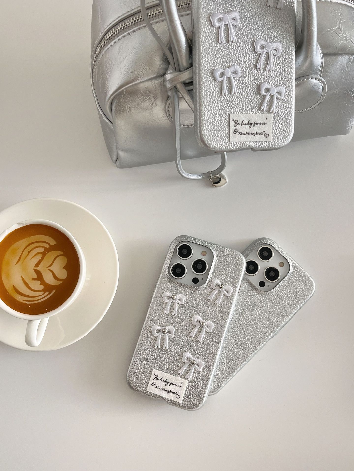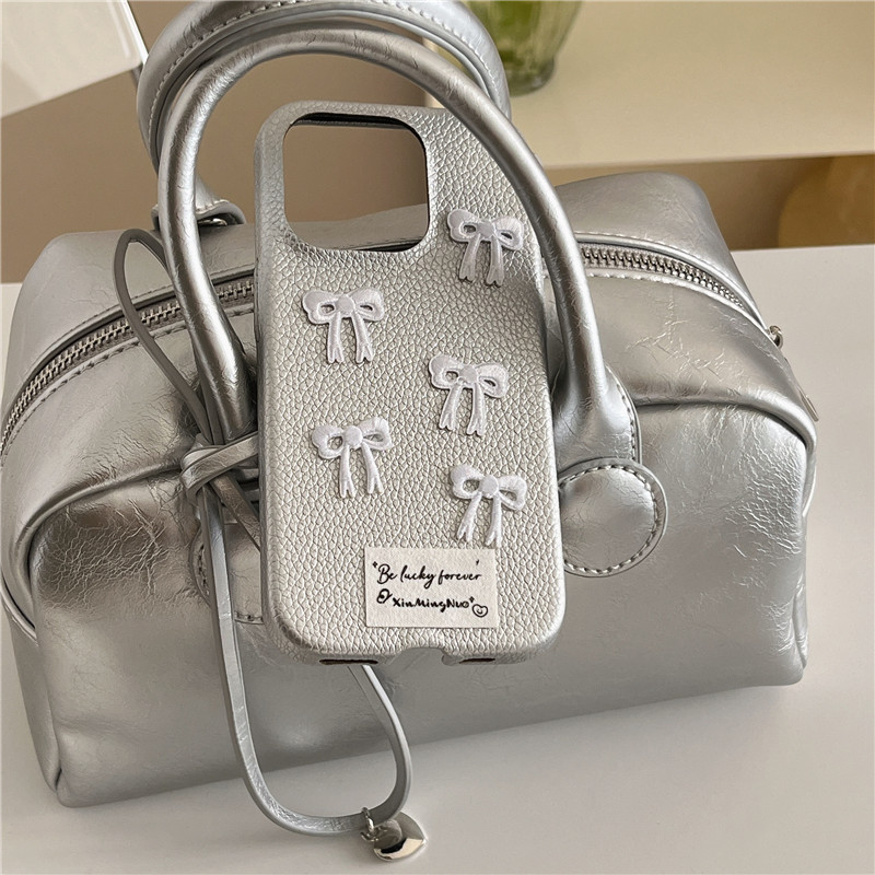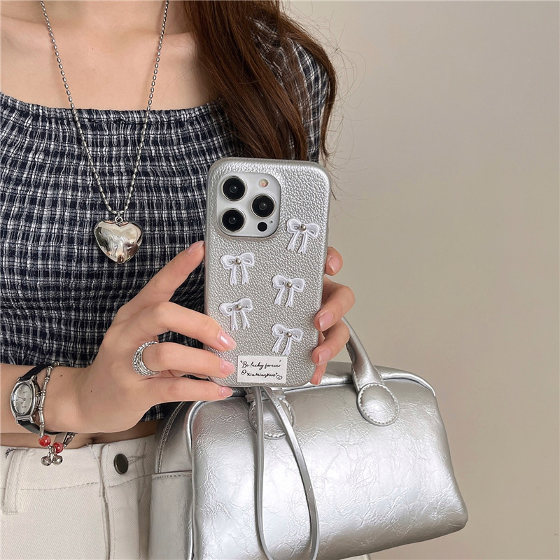 Color: silver leather, silver leather bow