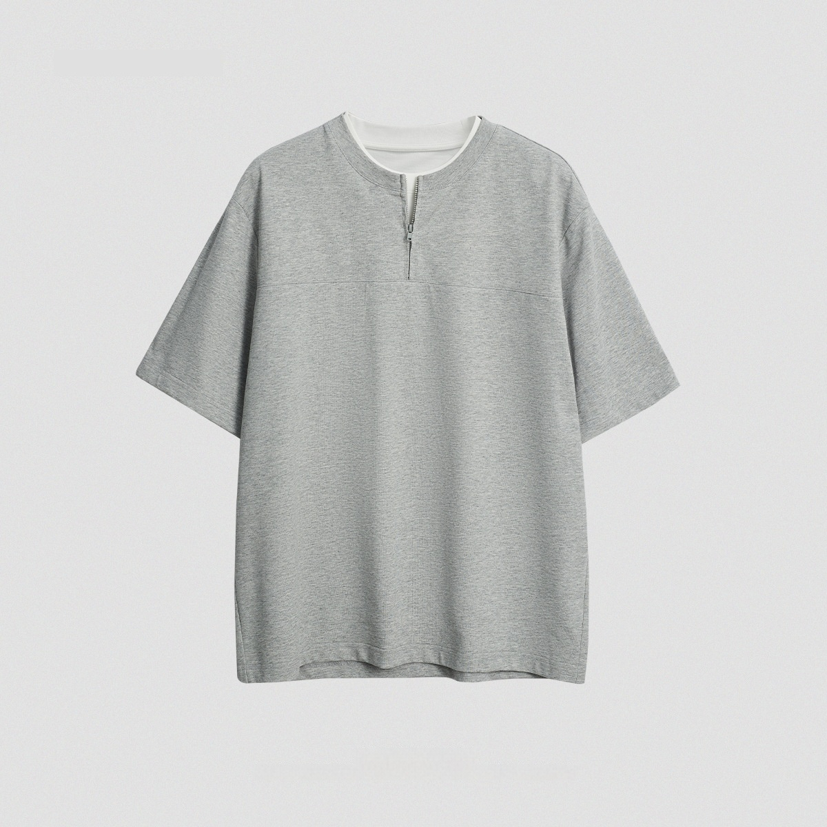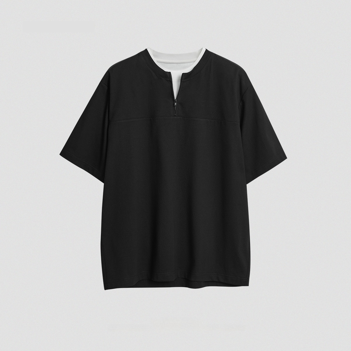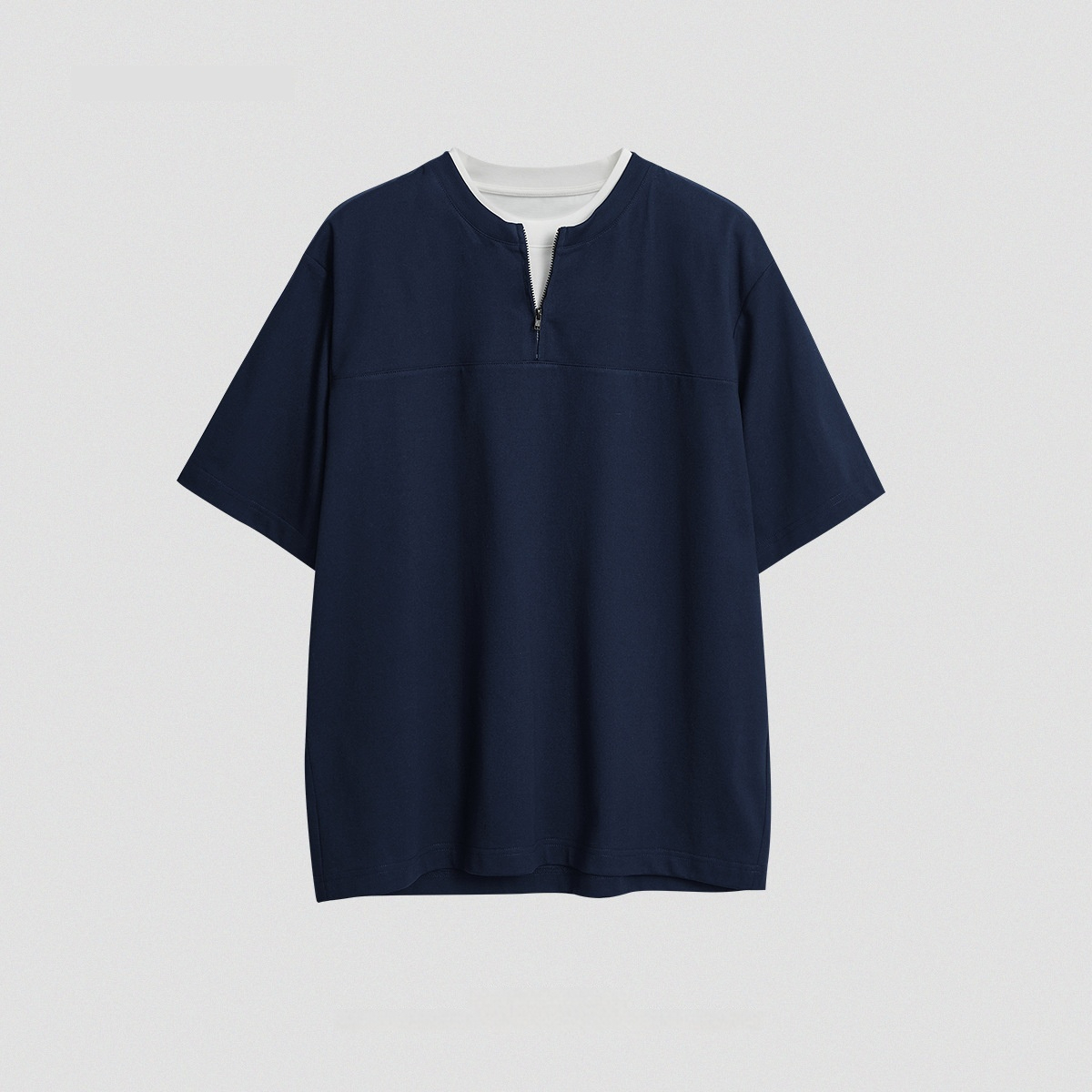 Simple Solid Color Loose Zip False Two-piece Patchwork Top