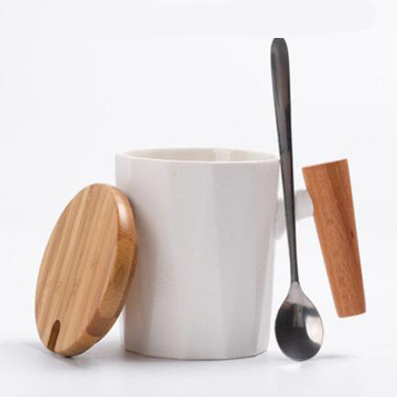 A: Rhomus Lobo glaze cup with wooden handle-white-spoon with lid,