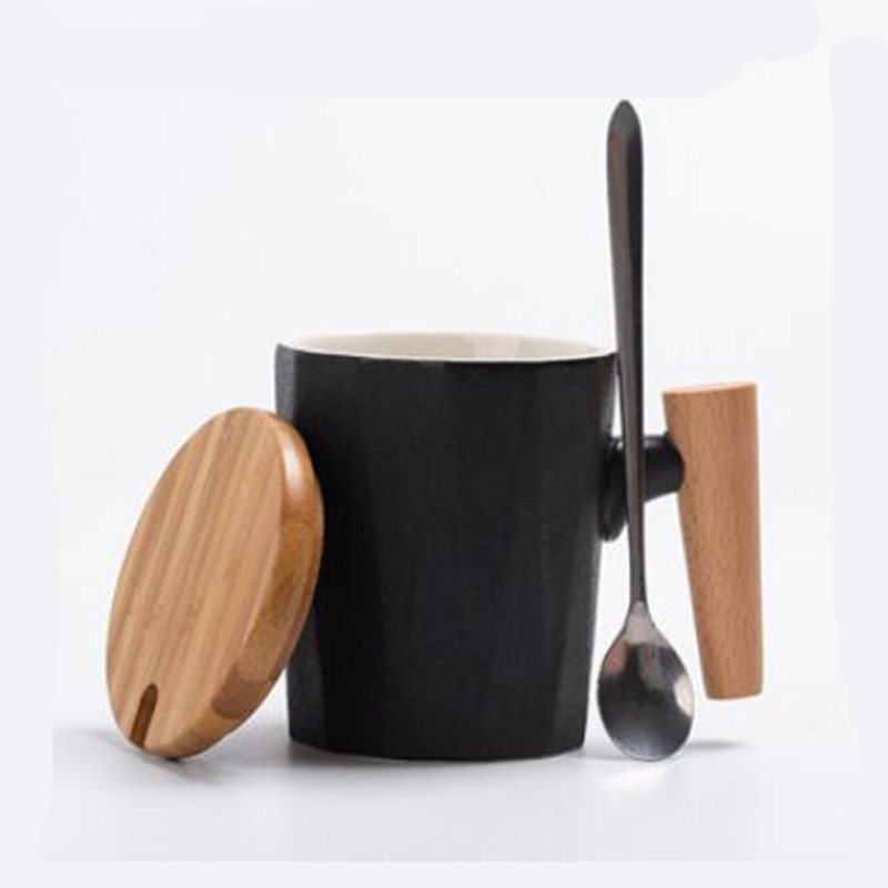 C: Rhombus Lobo glaze cup with wooden handle-black-spoon with lid,