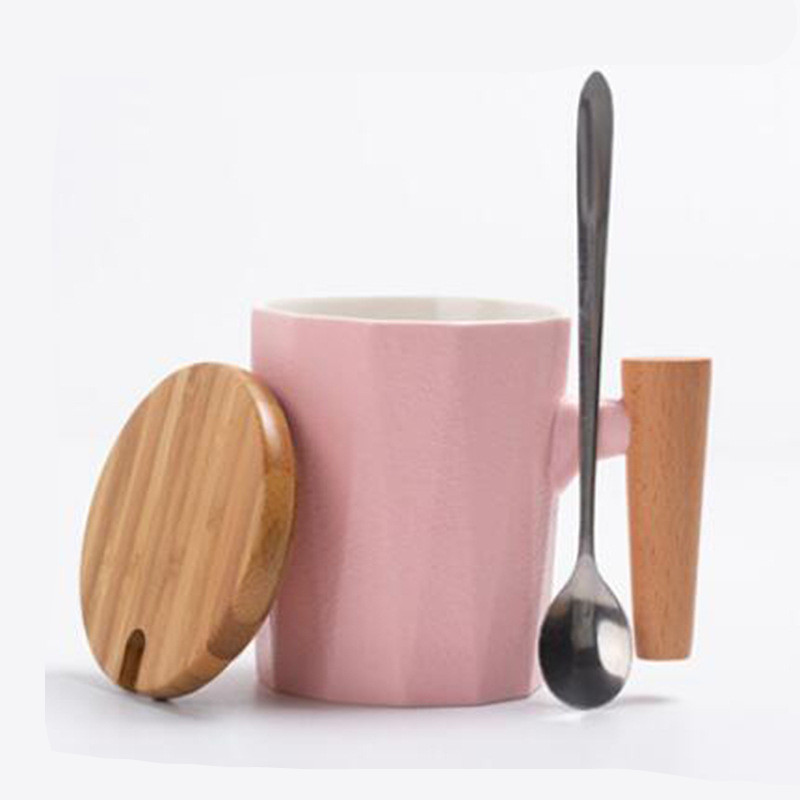 B: Rhombus Lobo glaze cup with wooden handle-pink-spoon with lid,