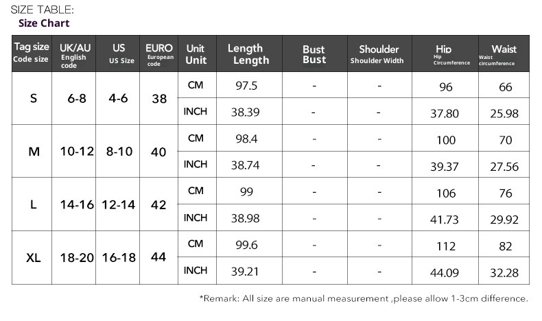 1. Asian sizes are 1 to 2 sizes smaller than European and American people. Choose the larger size if your size between two sizes. Please allow 2-3cm differences due to manual measurement. 2. Please check the size chart carefully before you buy the item, if you don't know how to choose size, please contact our customer service. 3.As you know, the different computers display colors differently, the color of the actual item may vary slightly from the following images.