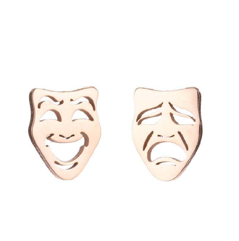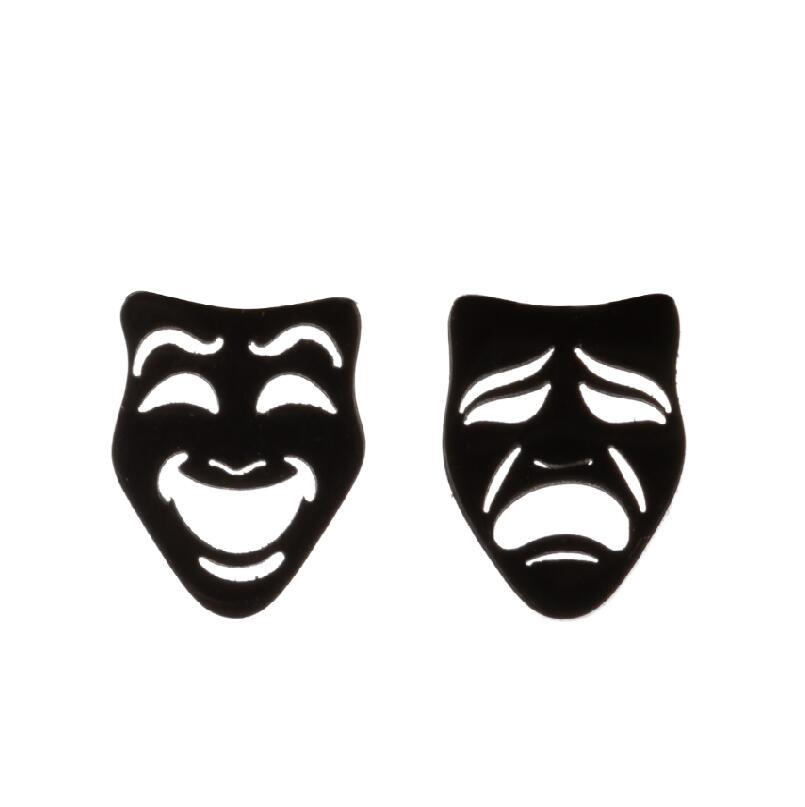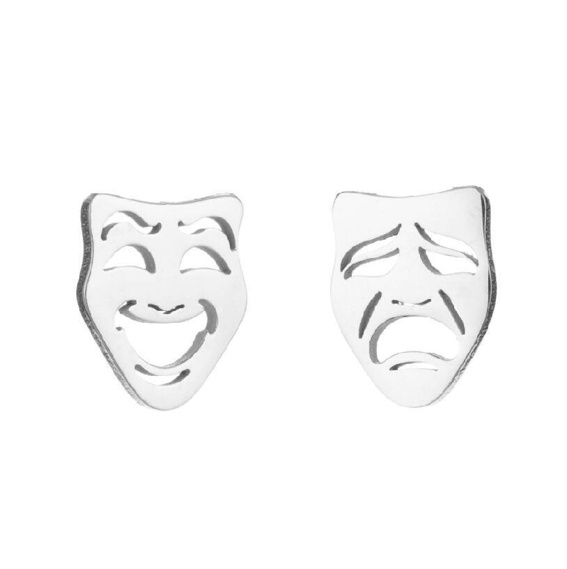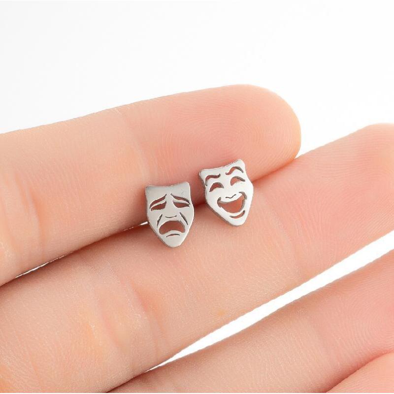 Simple Stainless Steel New Asymmetric Crying And Laughing Face Ear Bone Stud Halloween