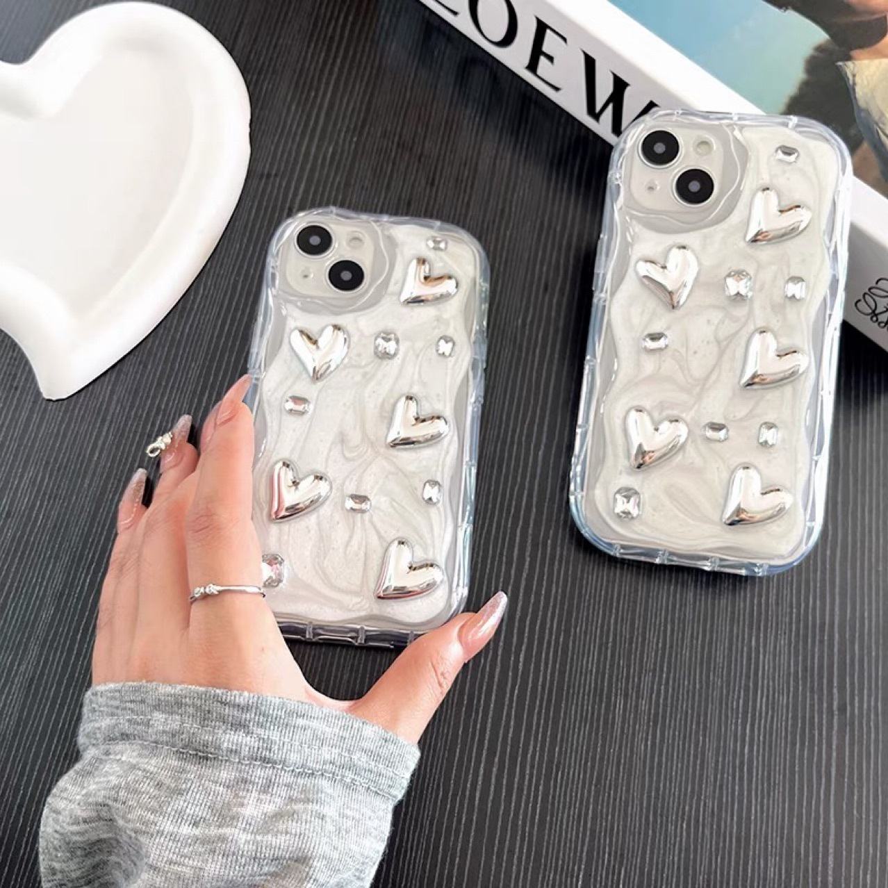 Color: Three-dimensional rhinestone love heart