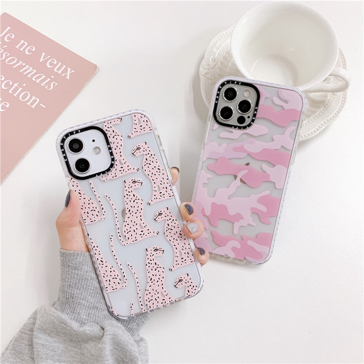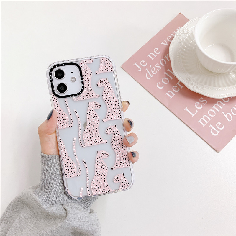 Color: white border transparent pink leopard A, white border transparent pink leopard B