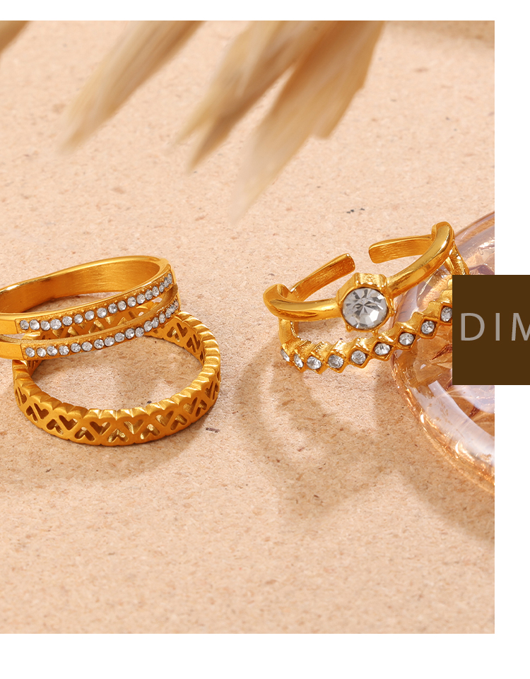 Simple Style Sugar Cube Multi-Layer Diamond-Inlaid Zircon Open Ring For Women, Stainless Steel, Light Luxury & Unique Adjustable Ring