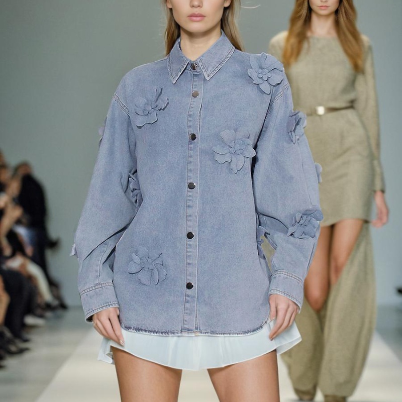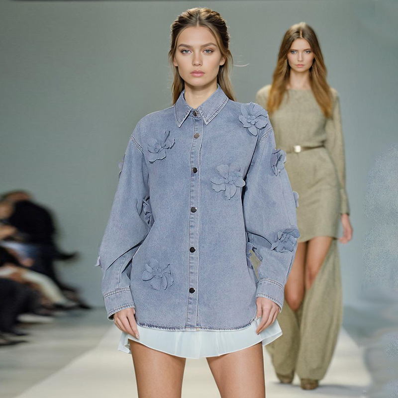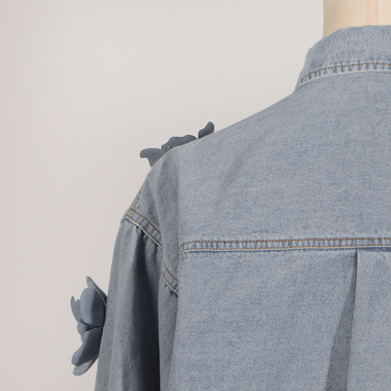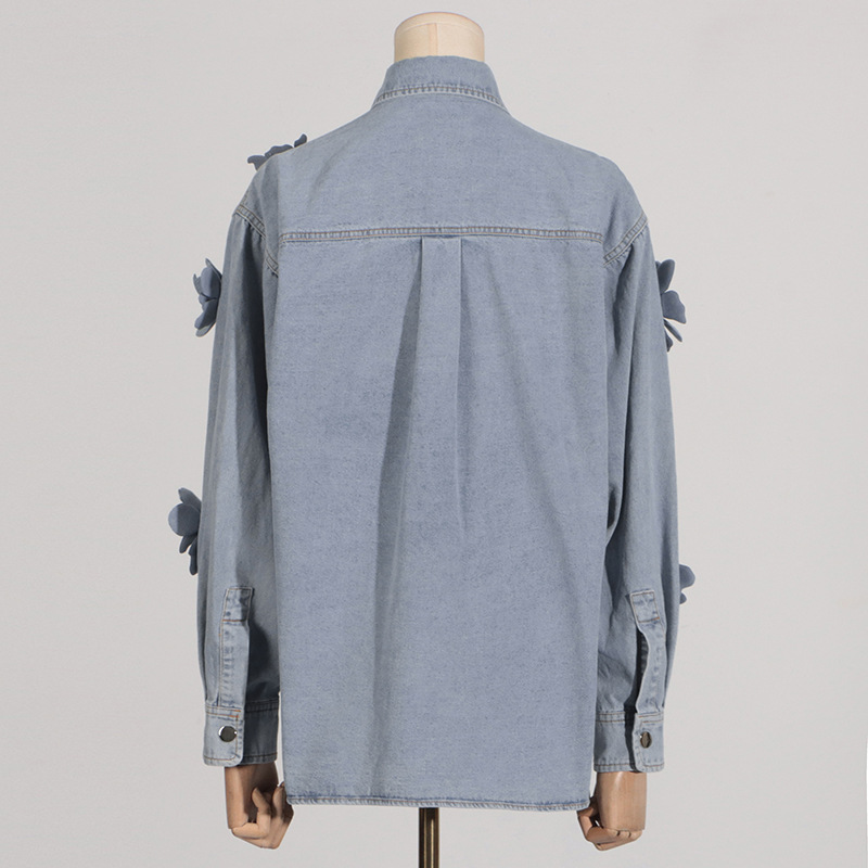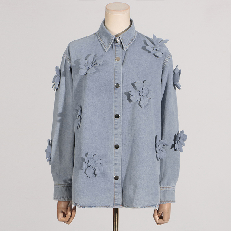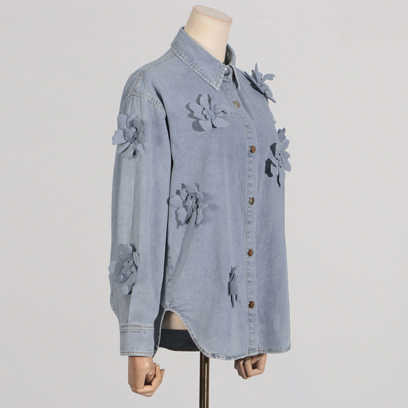 Simple Style Three-dimensional Flower Denim Top For Women Summer