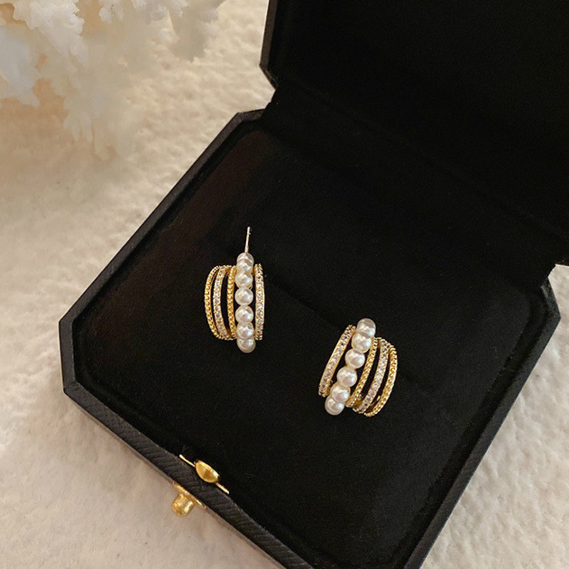 Color :Small Multi-Hoop Earrings Real Gold Plated 925 Silver Pin