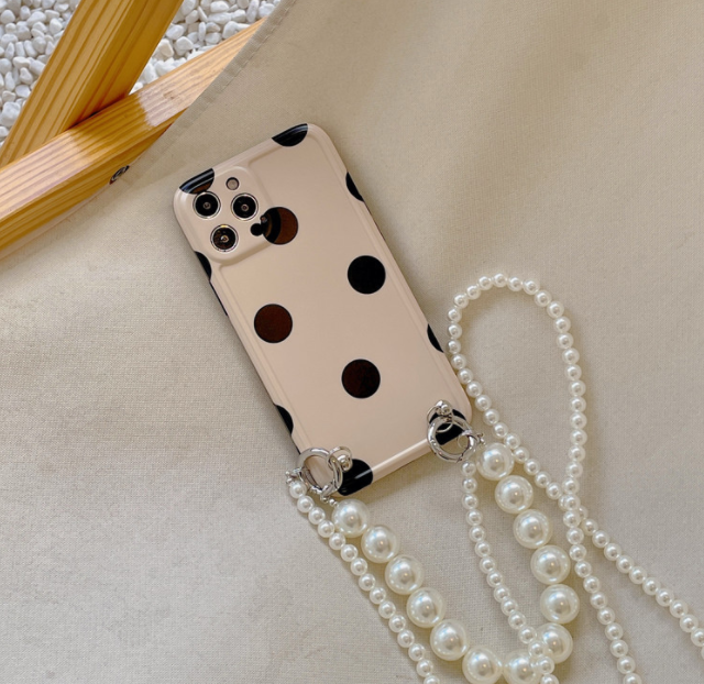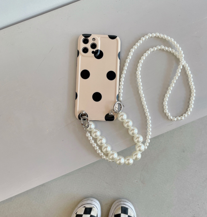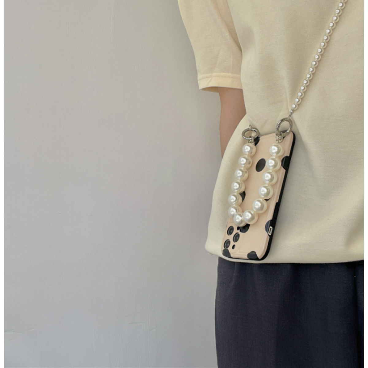 Product Name: Beige Polka Dot Pearl Bracelet Phone Case