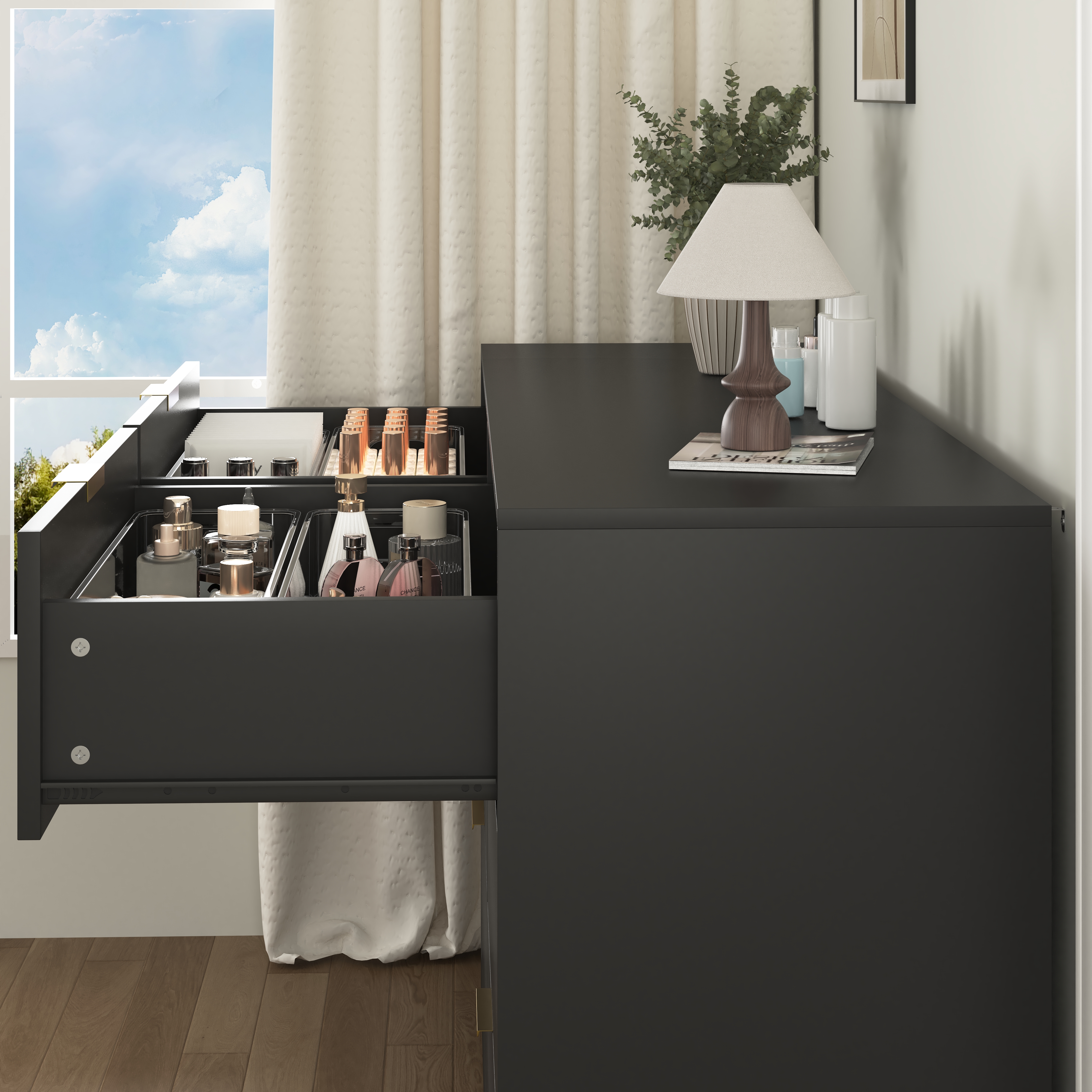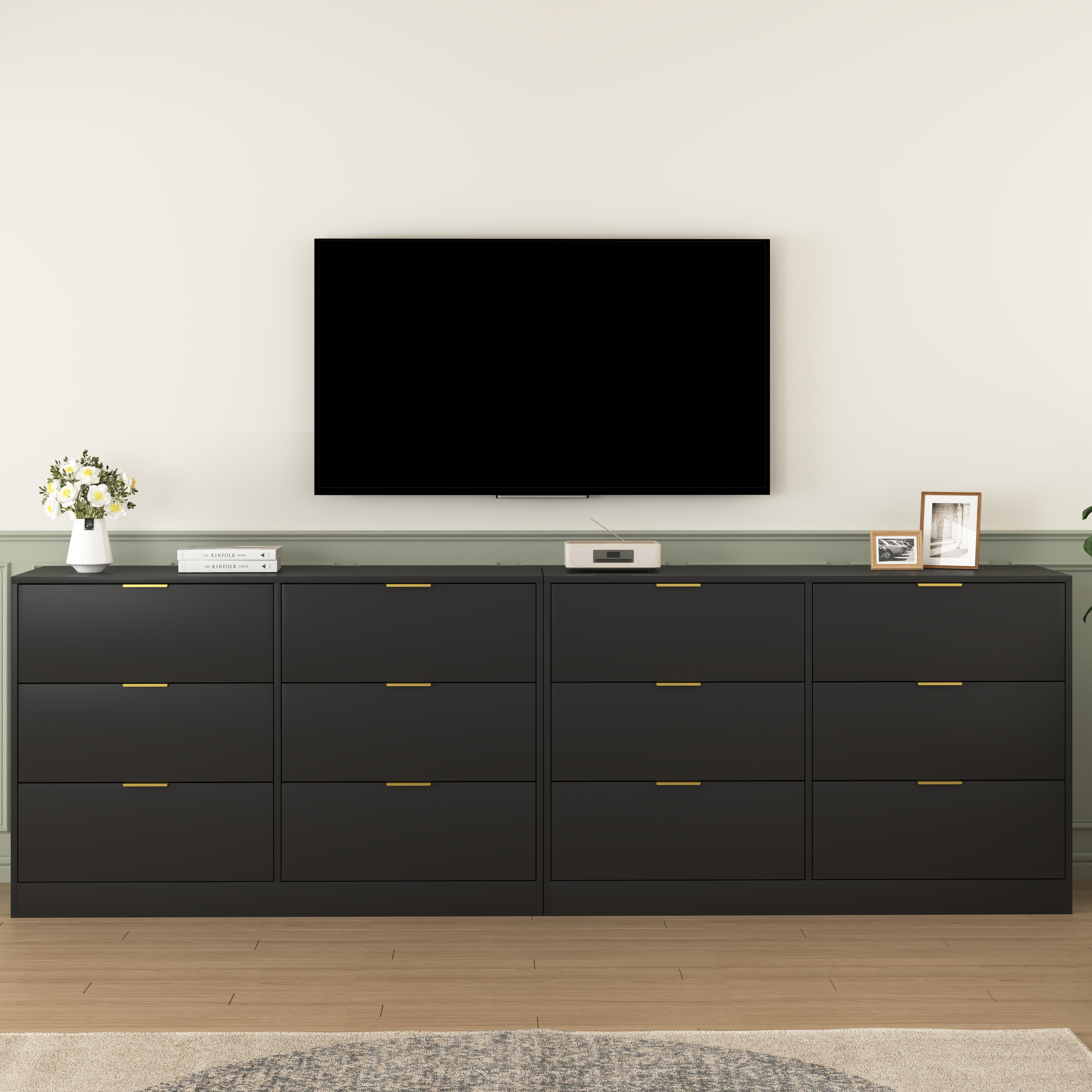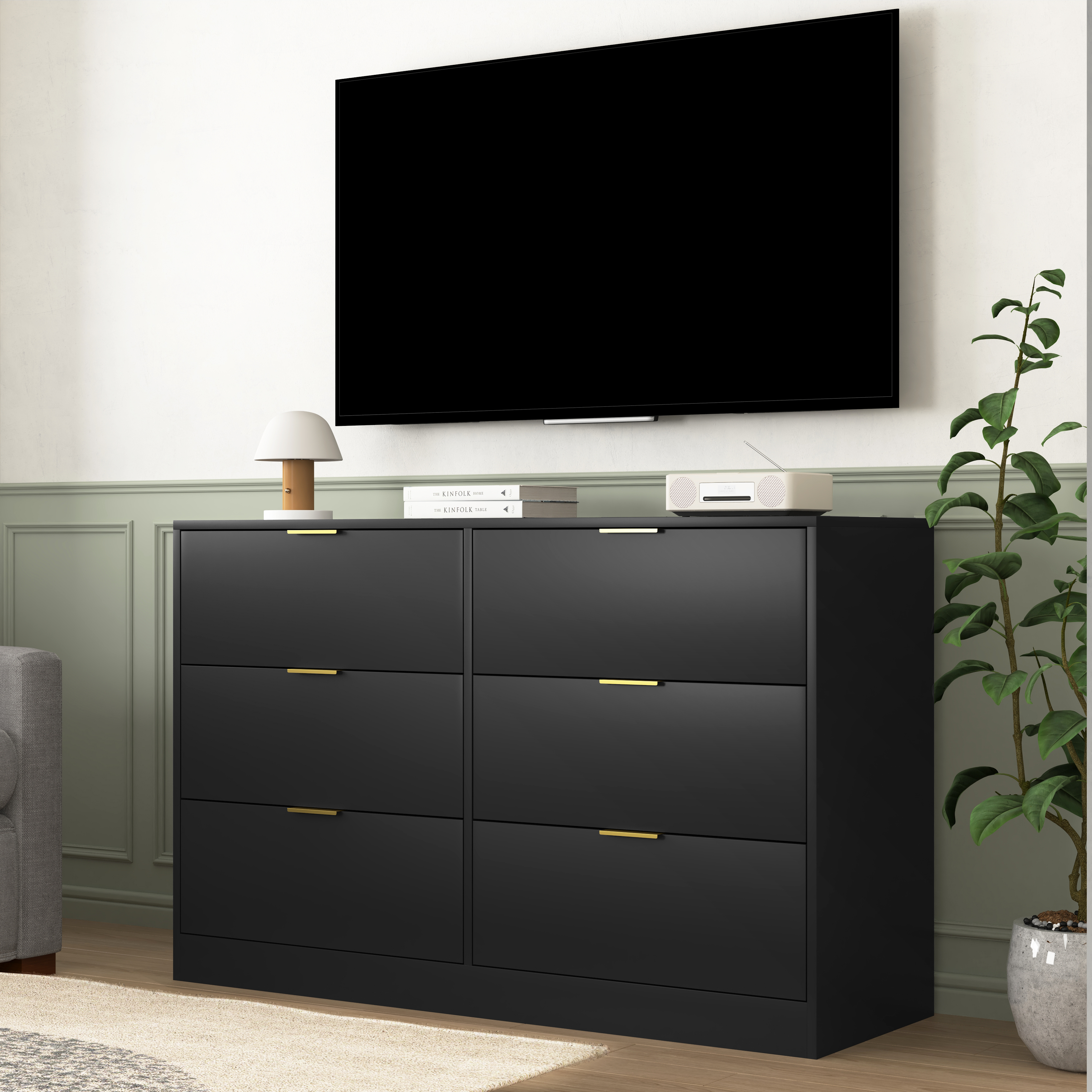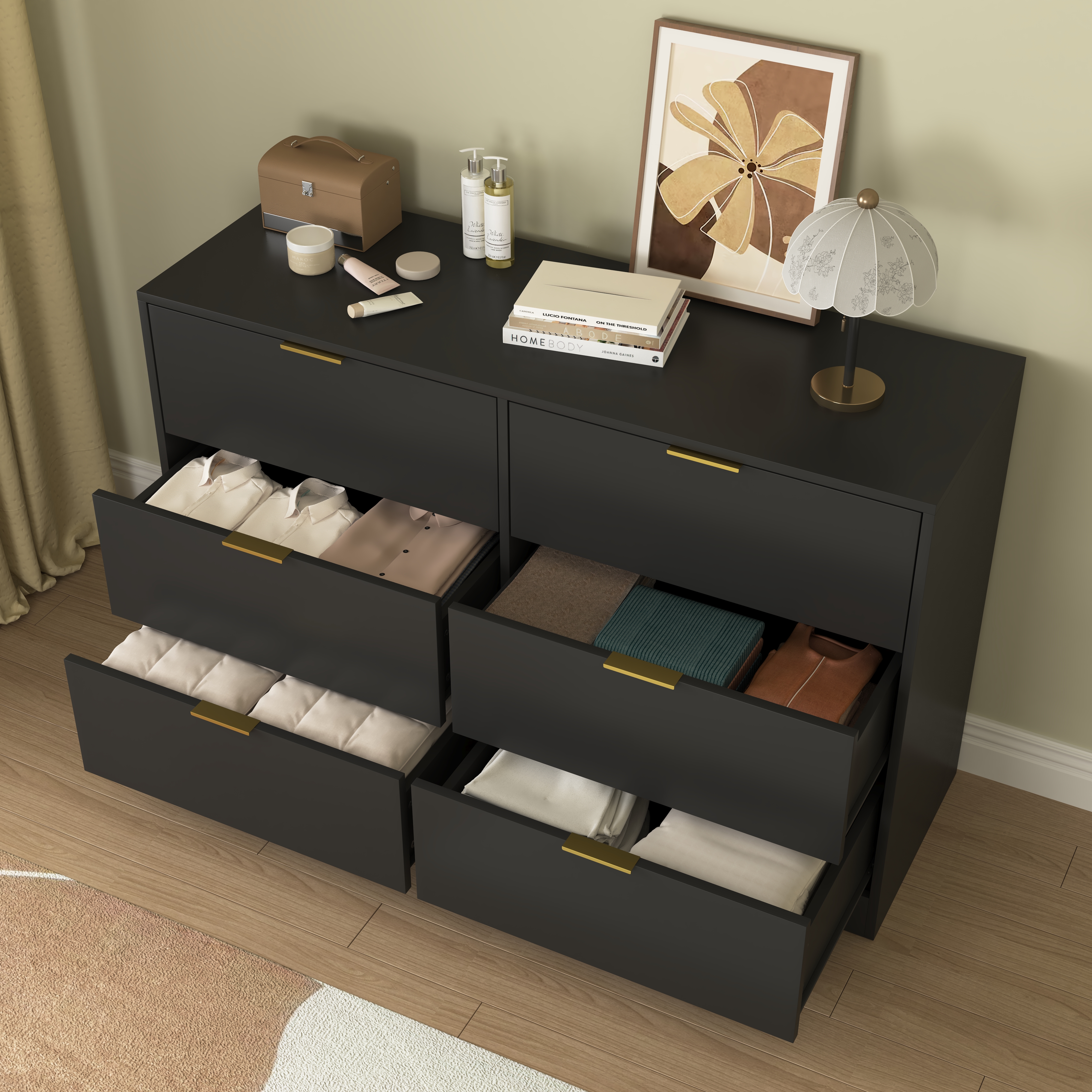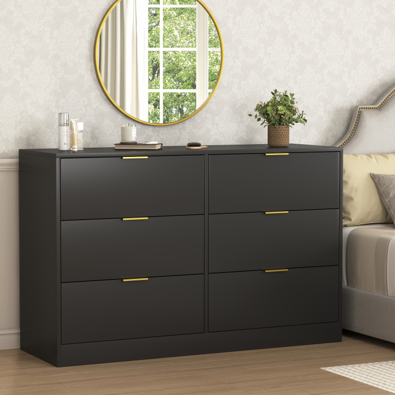 Product Name:Simply Modern 6-Drawer Dresser, Chest of Drawers for Bedroom, Living Room, Hallway, and Entryway - Large Storage Cabinet Black