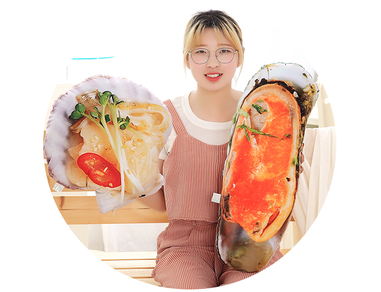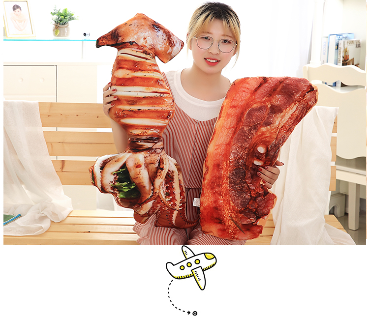 Product name: BBQ seafood food pillowShell fabric: soft short plushProduct filling: Vacuum PP cotton.