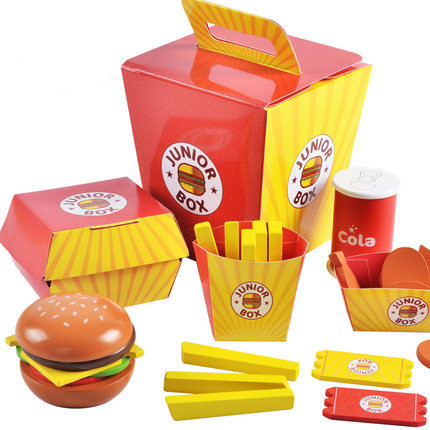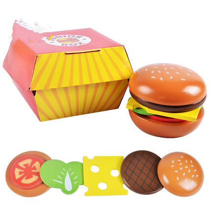 Product name: play house burger combinationMain material: woodPacking: color box packingPacking size: 15*15*17cm