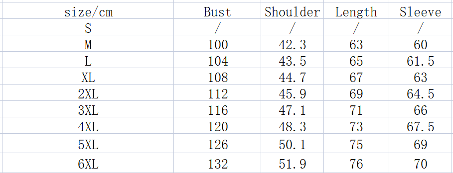 Size: M, L, XL, 2XL, 3XL, 4XL, 5XL, 6XL