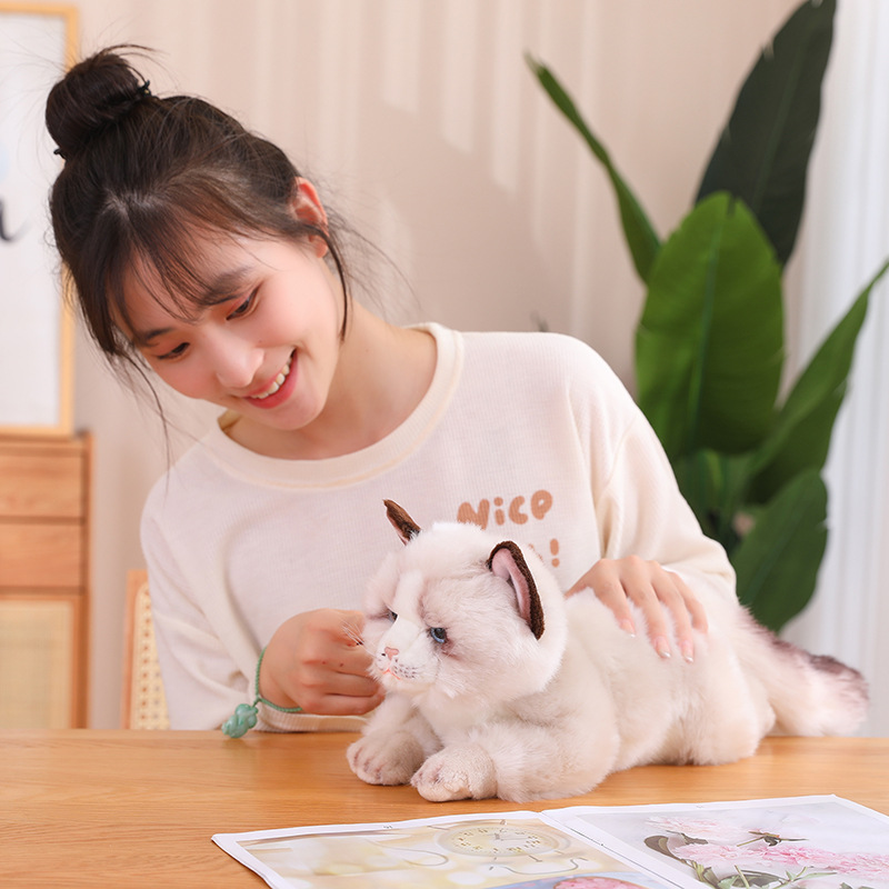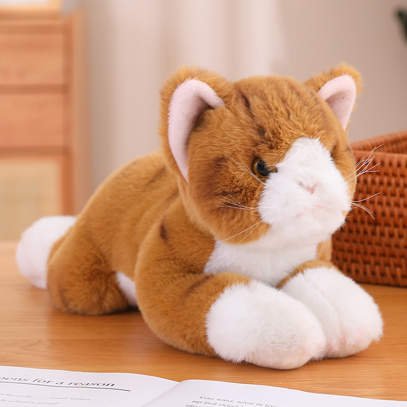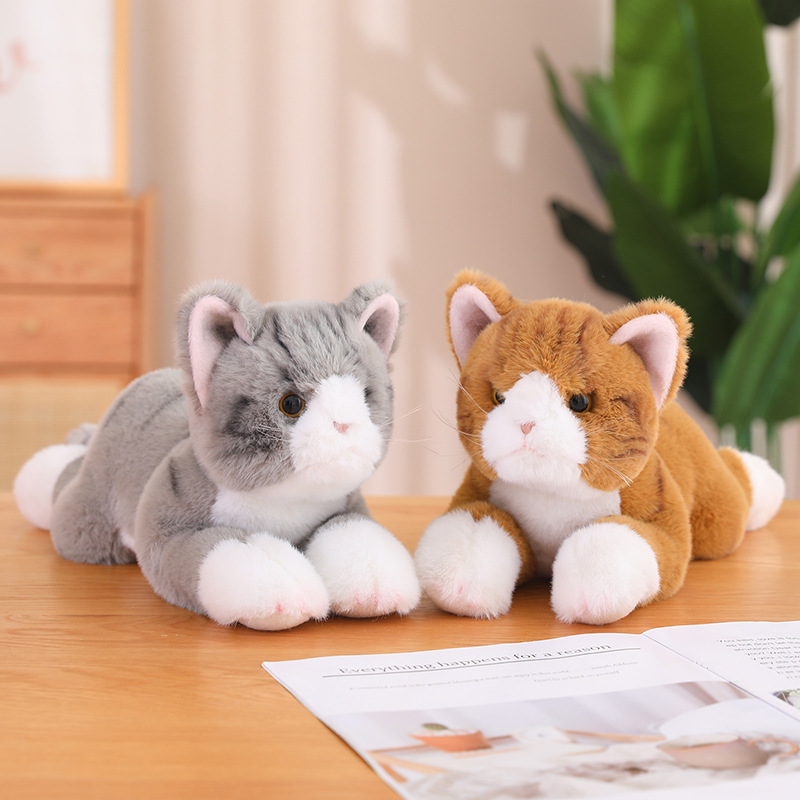 Size: gray and white Lying Cat 35cm; Brown White Lying Cat 35cm; Two-color cat cm; Ragdoll 50cm (including tail); Lying style Pomeranian 40cm