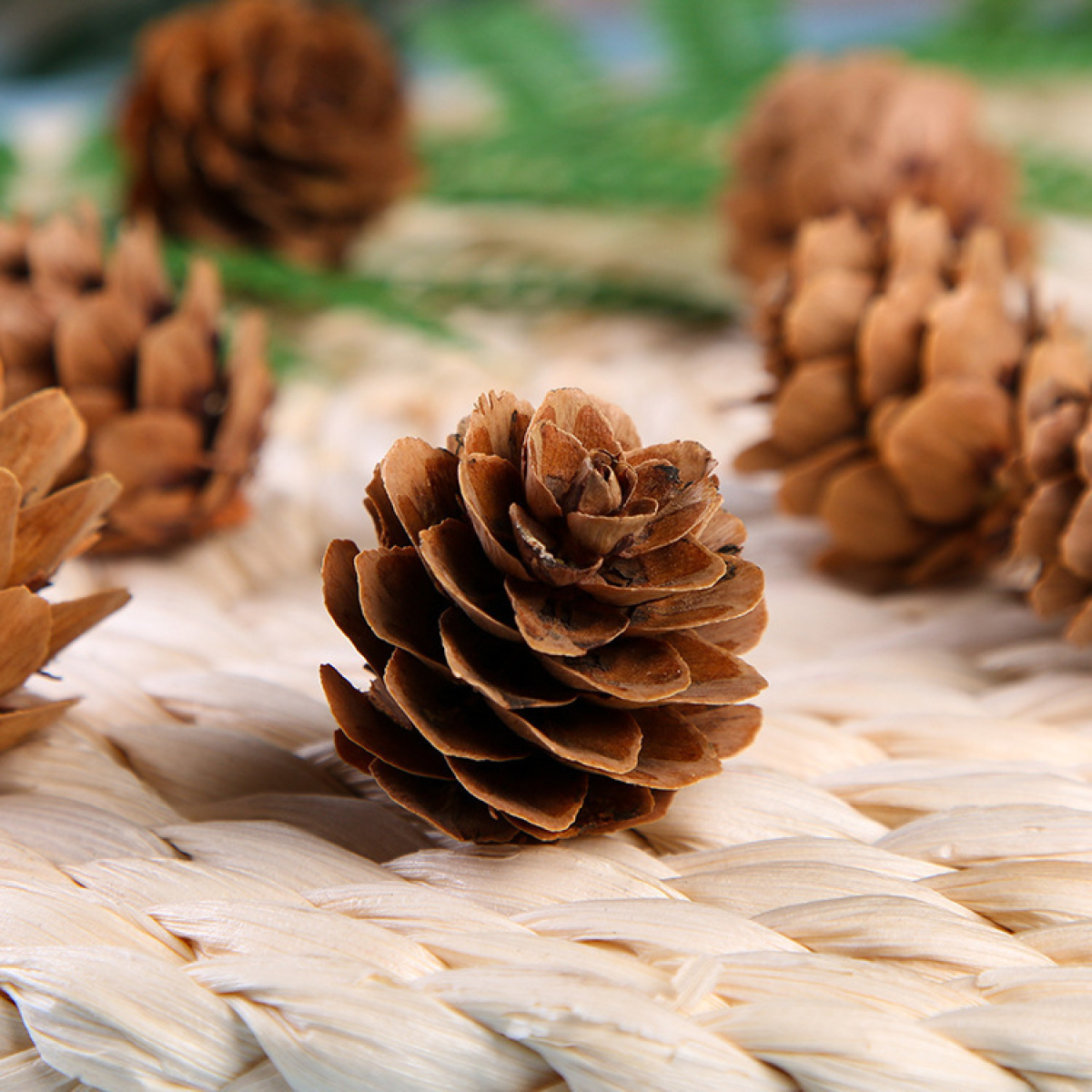Color: width 8*height 10cm green pine needles, 2-3cm small pine cones, 10mm Christmas red cones, width 5*height 5cm green pine needles, width 10*height 15cm green pine needles, tied wire 2.5-3.5cm small pine cones