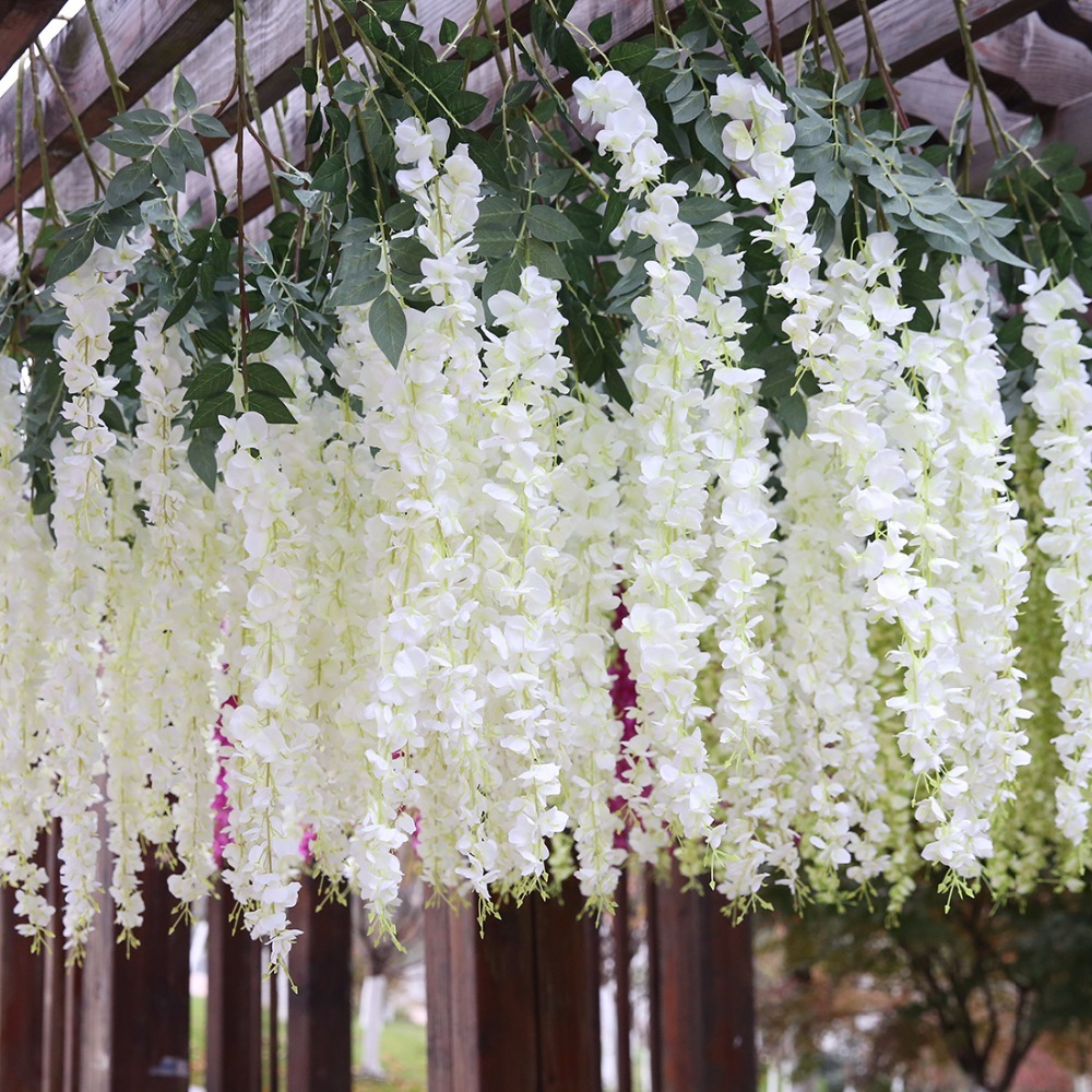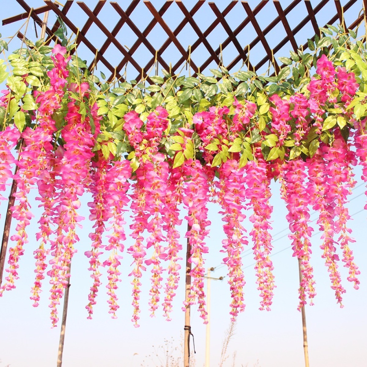 12 pieces 3.6 feet realistic romantic classic artificial fake wisteria vine flower for garden flower decoration DIYLiving room hanging flower plant vine family party wedding simulation decoration, very suitable for wedding decoration, table setting or elegant family / hotel lobby decoration. Easy to clean and keep clean, easy to install artificial Wisteria flowers - well-made, colorful - looks real and has real touch performance. Used for weddings, hotels, parties and other ceremonies, it is the best decoration for families, hotels and parks. Ideal for wedding bouquets, parties, office decorations, decorations, altars, churches, boutonniere, leather bows, reception centers, etc. You can hang them anywhere on walls, doors, swings, mirrors and your favorite artificial foliage vines . Color: As shown in the picture, about 105-110 cm / 41.34-43 31 inches perfect wedding decoration. They are 12 separate stems. To make it look like it looks like in the picture, you will need a lot of things