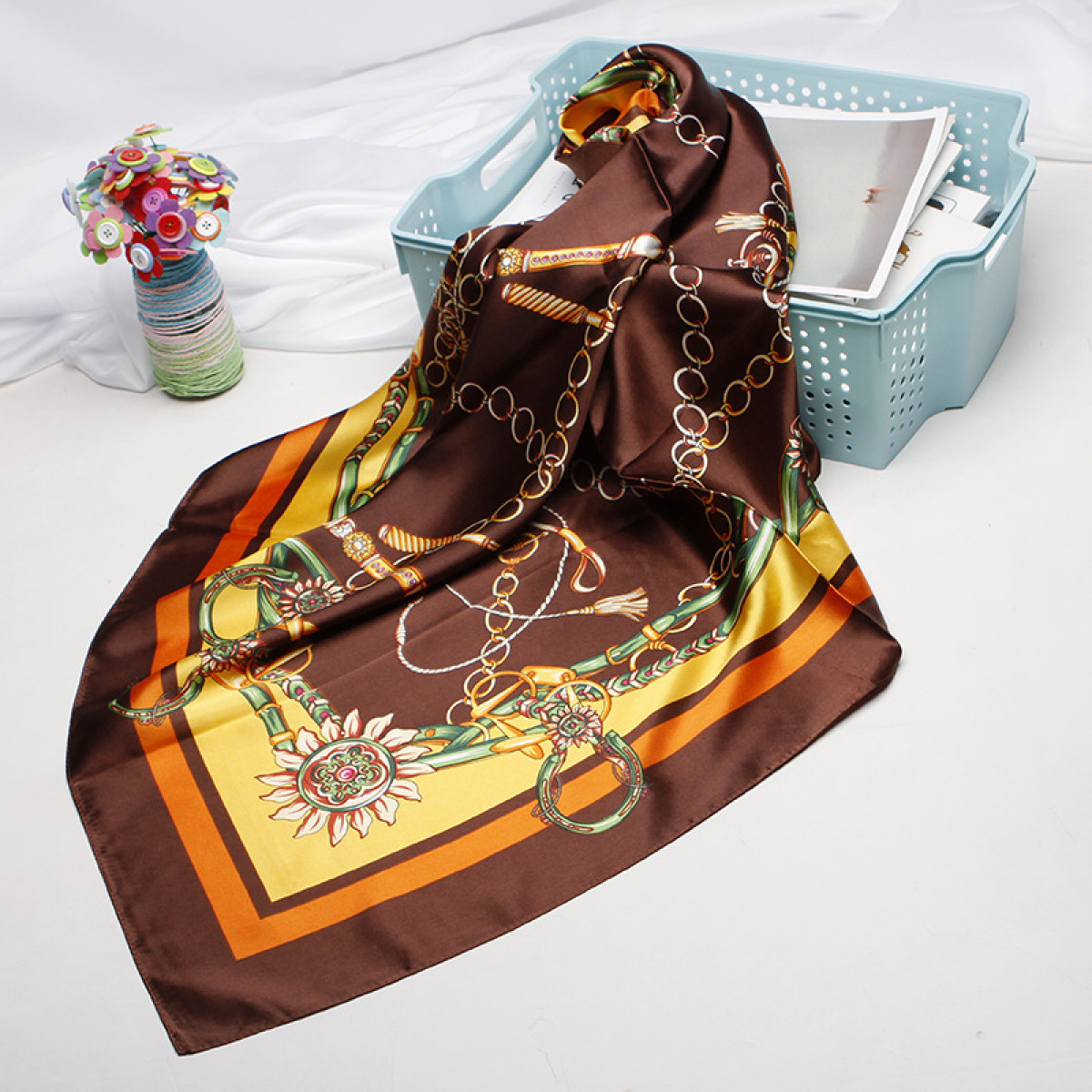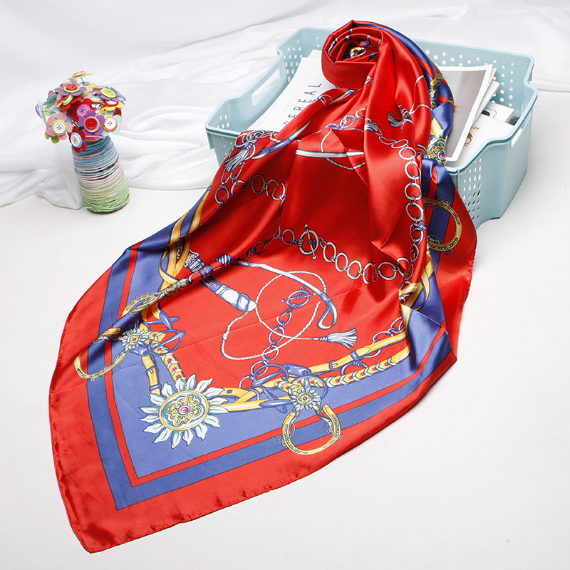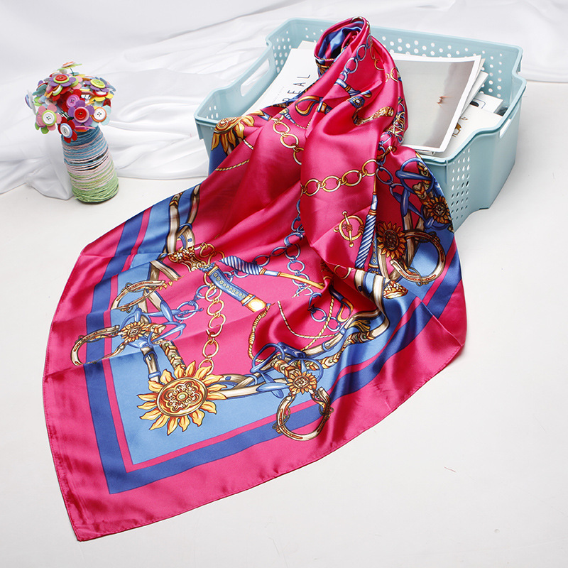 Simulation Silk Scarf, Women's Printed Kerchief, Shawl And Headband