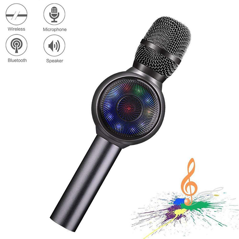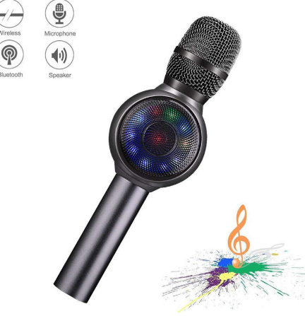1. particulier special design and easy to use】 -in addition to a wireless microphone, the karaoke microphone can also be used as a bluetooth speaker and recorder. it also has colorful LED lights. with multifunction buttons, you can adjust the music, echo, volume and free to change the previous and next song.