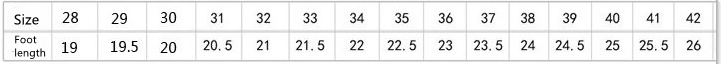 Shoe size: 28 29 30 31 32 33 34 35 36 37 38 39 40 41 42 43