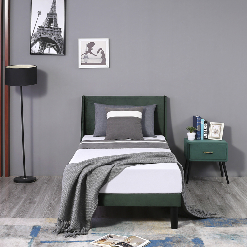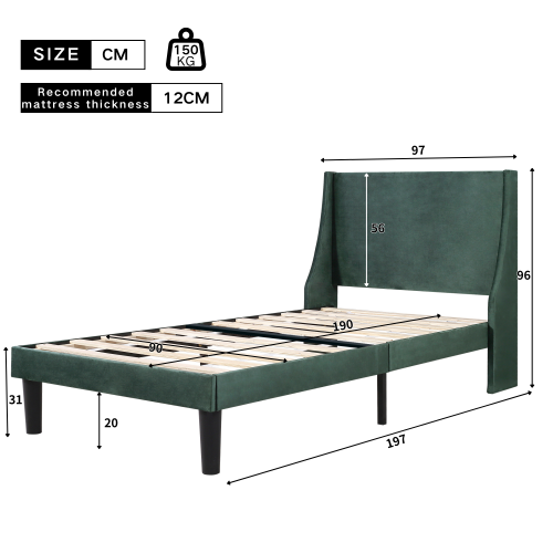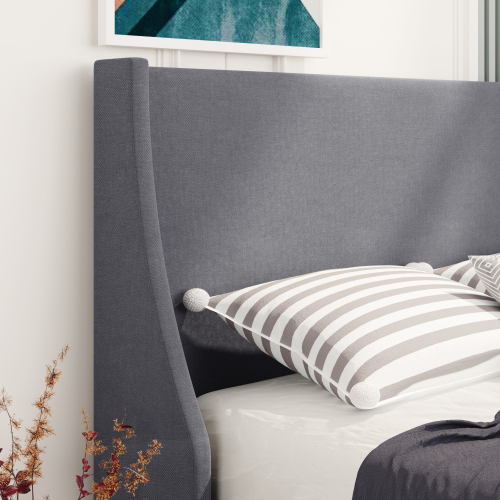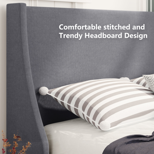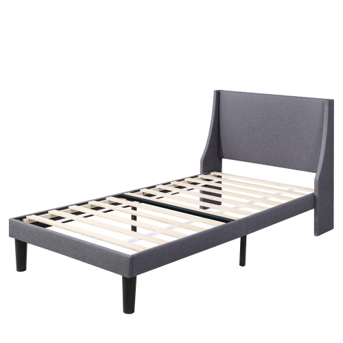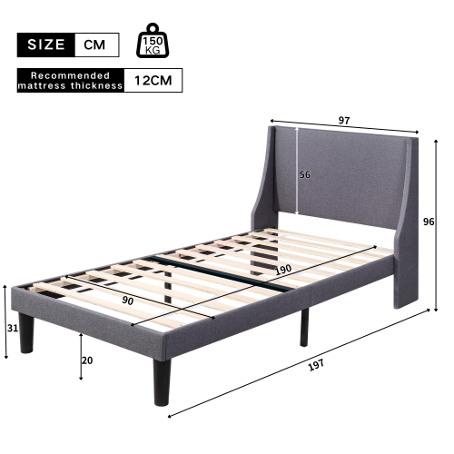 Product Name:Single Bed Soft Linen Grey 3FT Upholstered Bed with Winged Headboard, Wood Slat Support