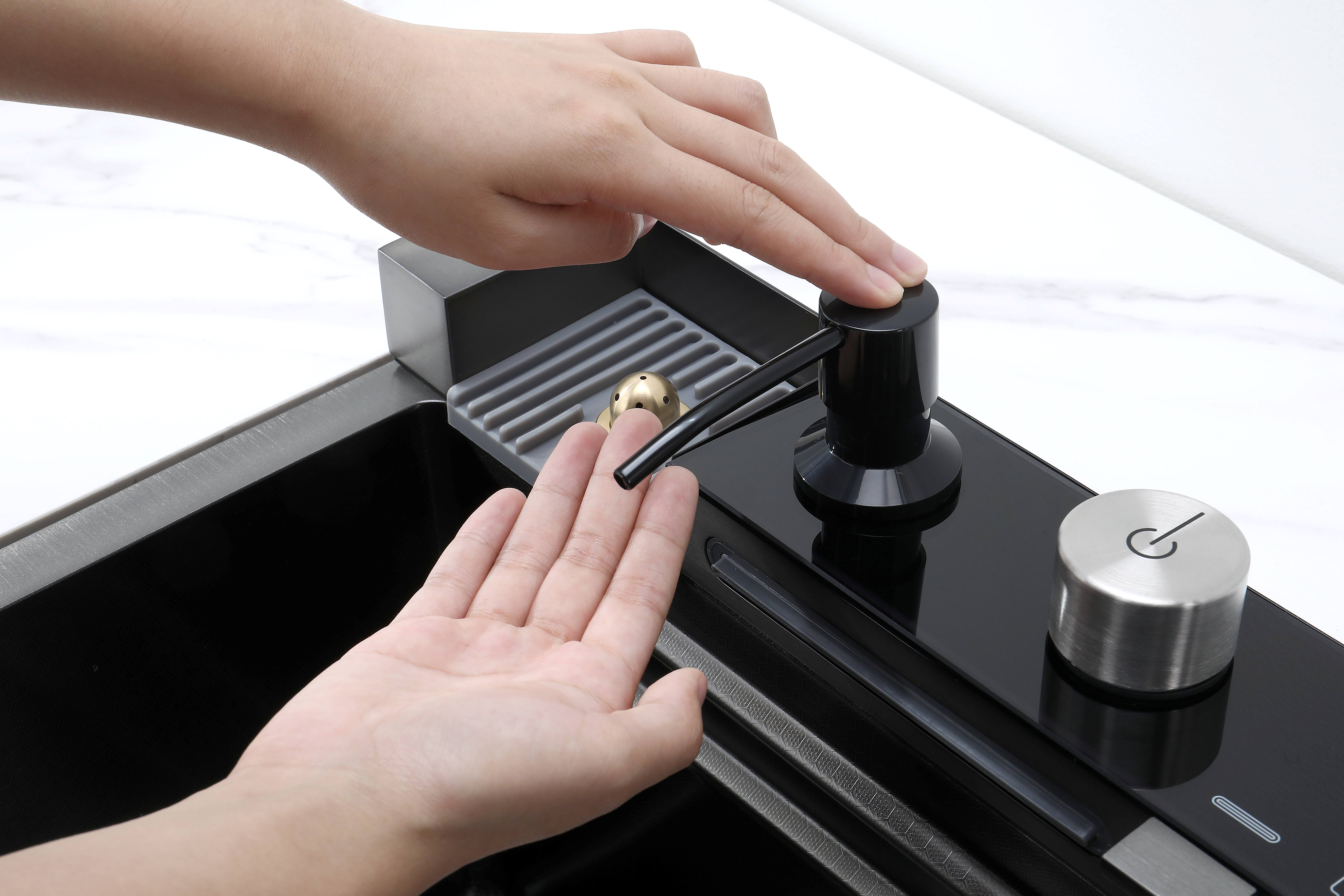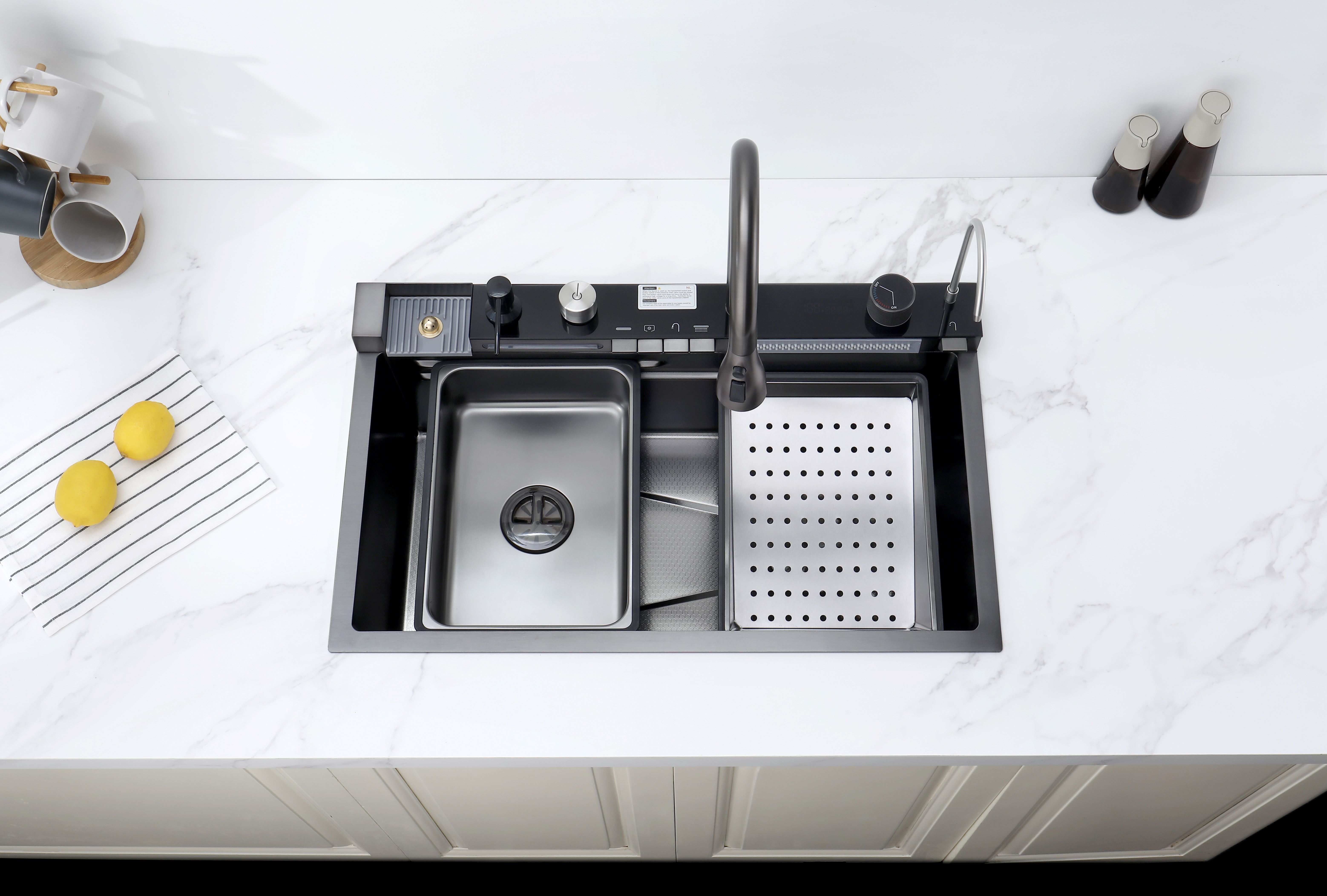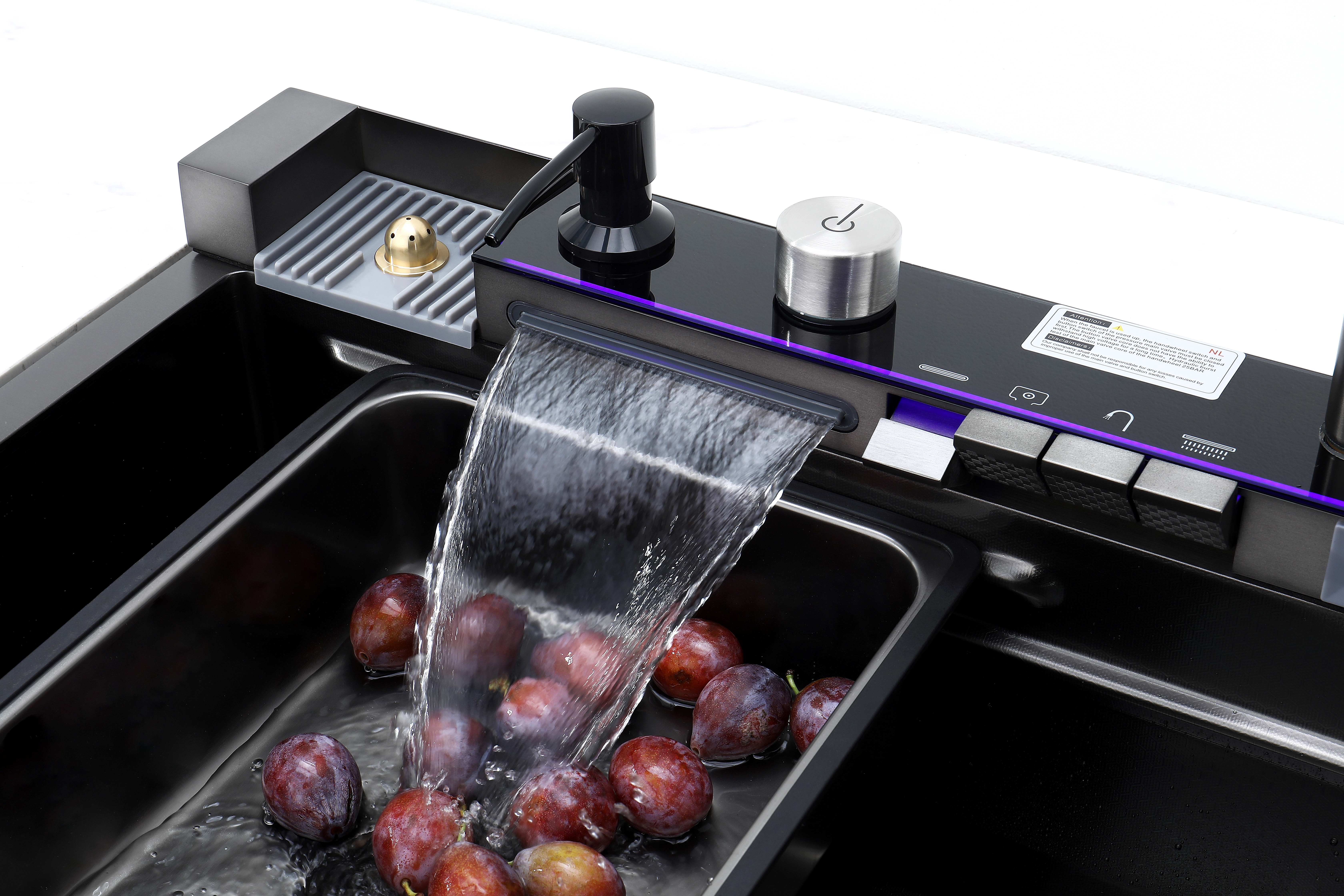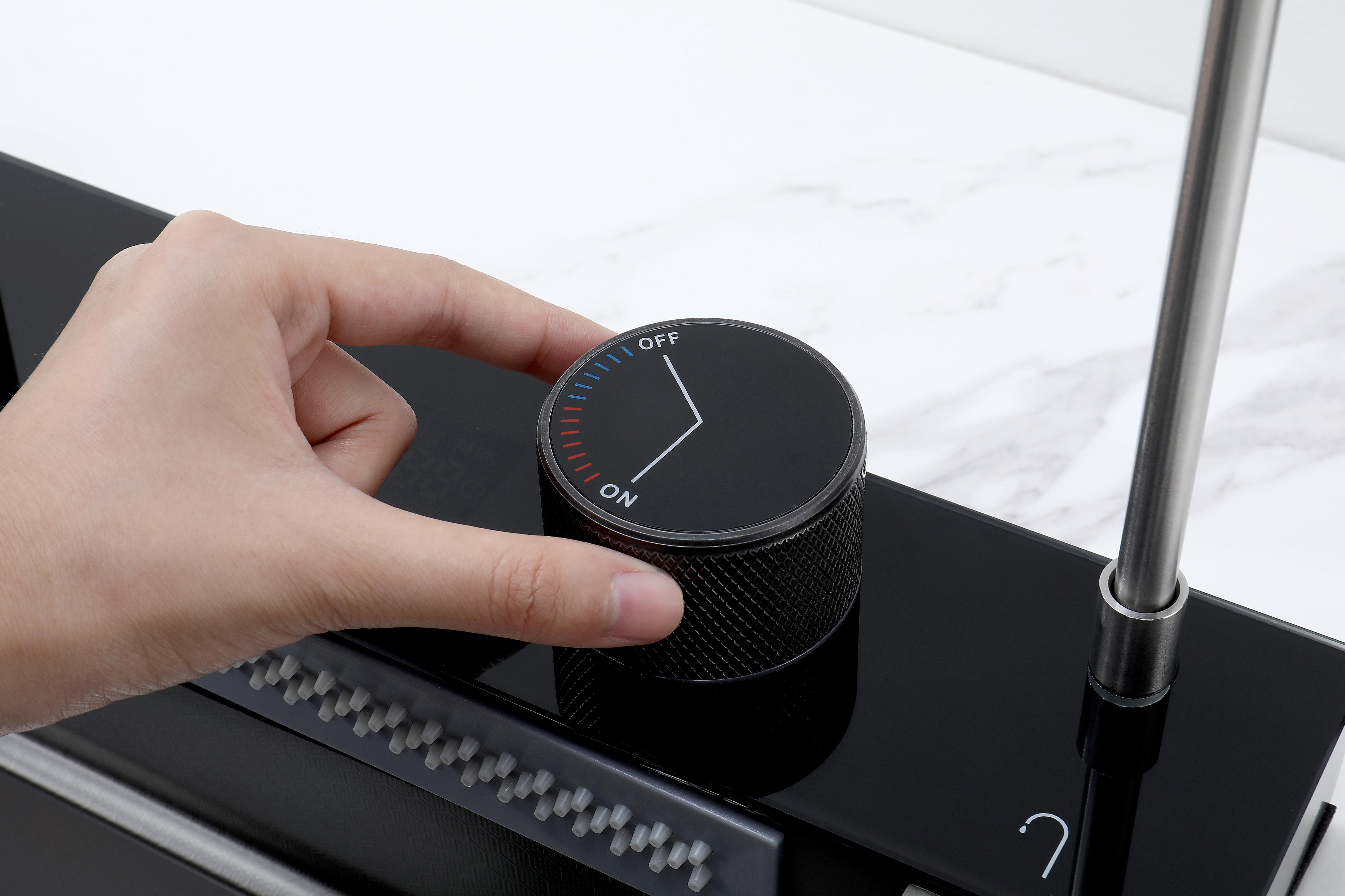 Dual-Knob System: Control everything easily with dual knobs. One controls water temperature and pressure. The other adjusts drains without dirtying your hands. It is designed for intuitive use and precise control. Tailor the water to your specific needs. Honeycomb Embossing Coating: Offers superior water and oil repellency, scratch resistance, and effortless cleaning, ensuring long-lasting durability and a spotless finish.