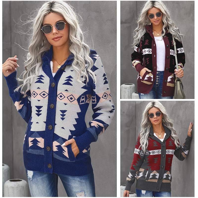 Single-breasted Cardigan Sweater Women's Hooded Slim Fit