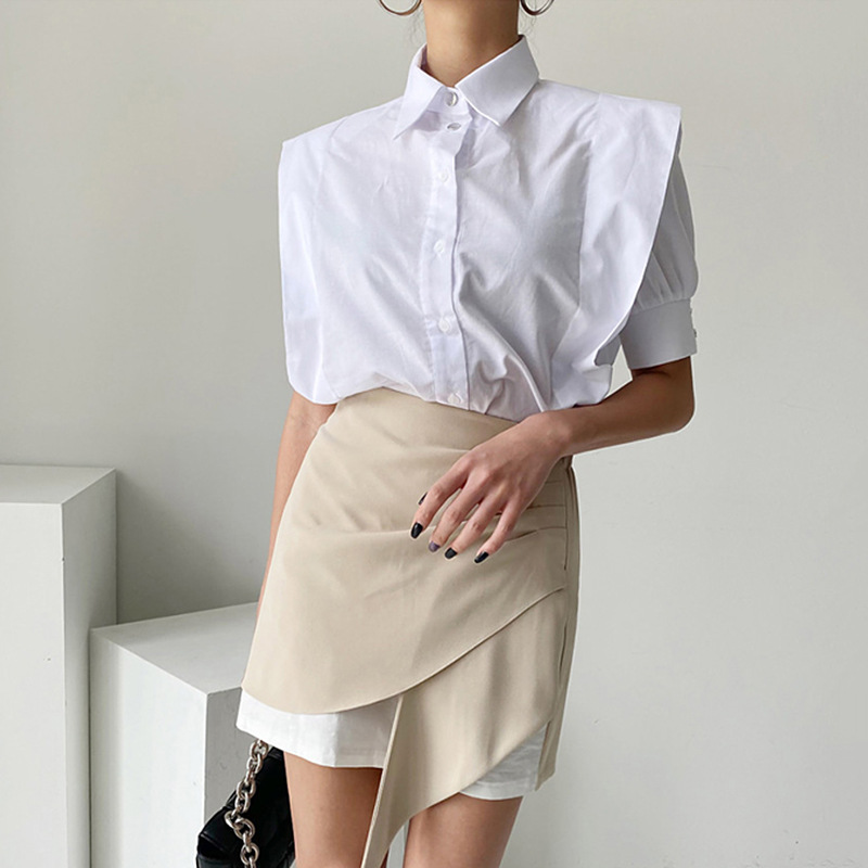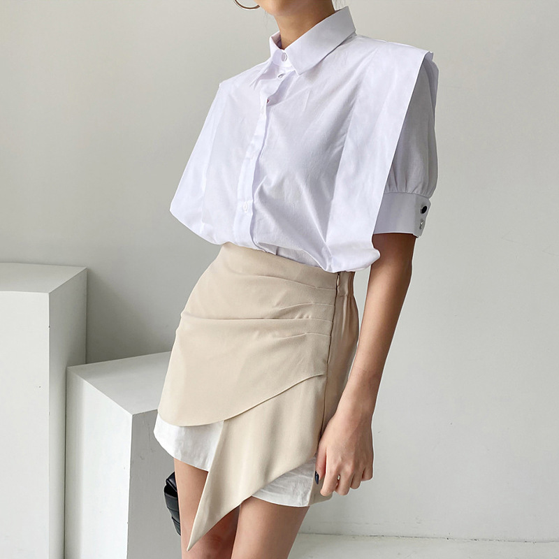Color: White shirt, irregular skirt