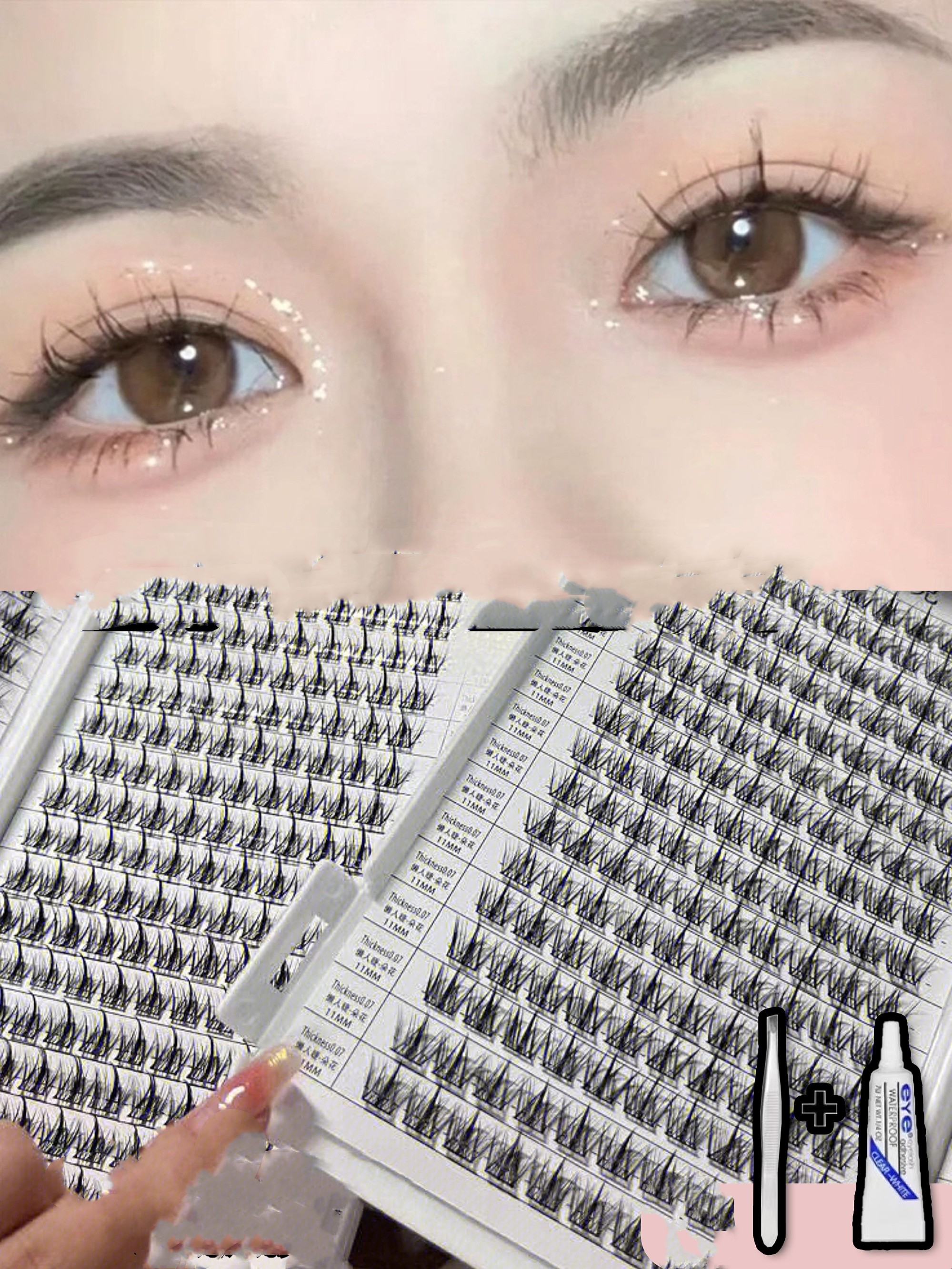 False eyelashes+Tweezers+glue
