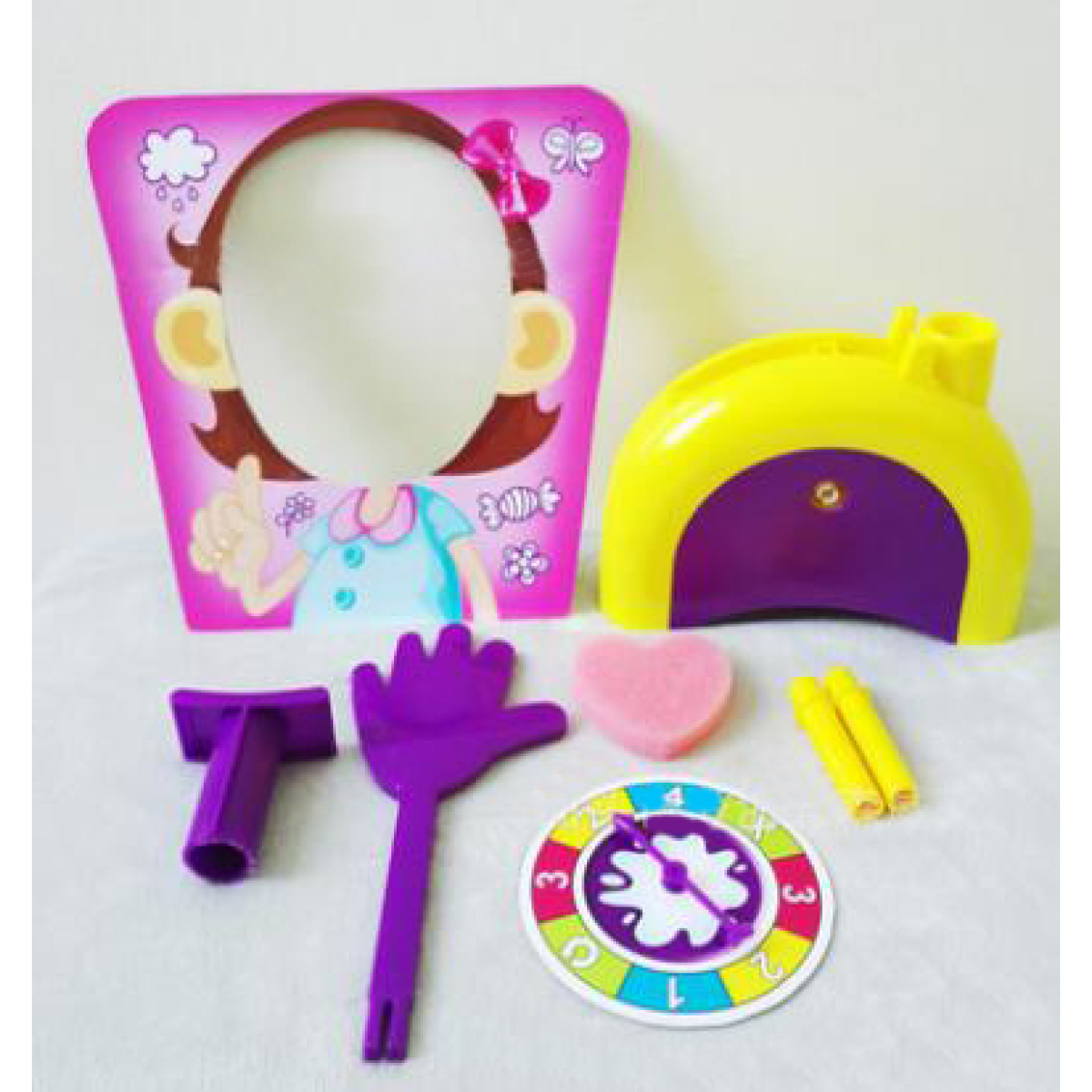 1 x Pie Thrower 1 x Throwing Arm2 x Chin Rest 2 x Splash Card Mask1 x Sponge
