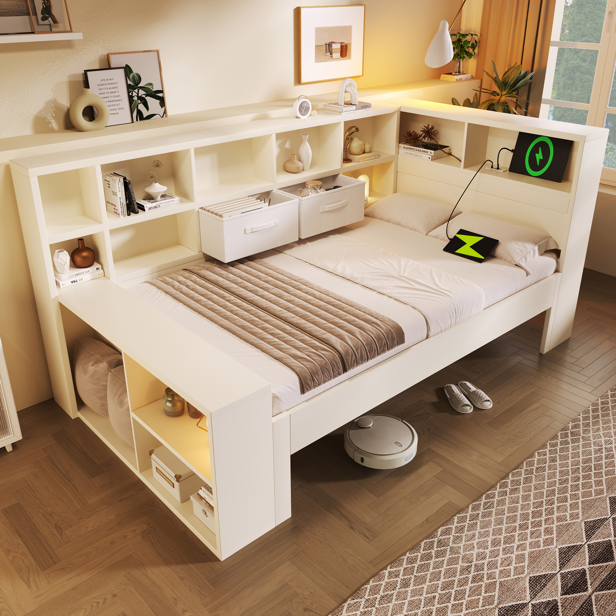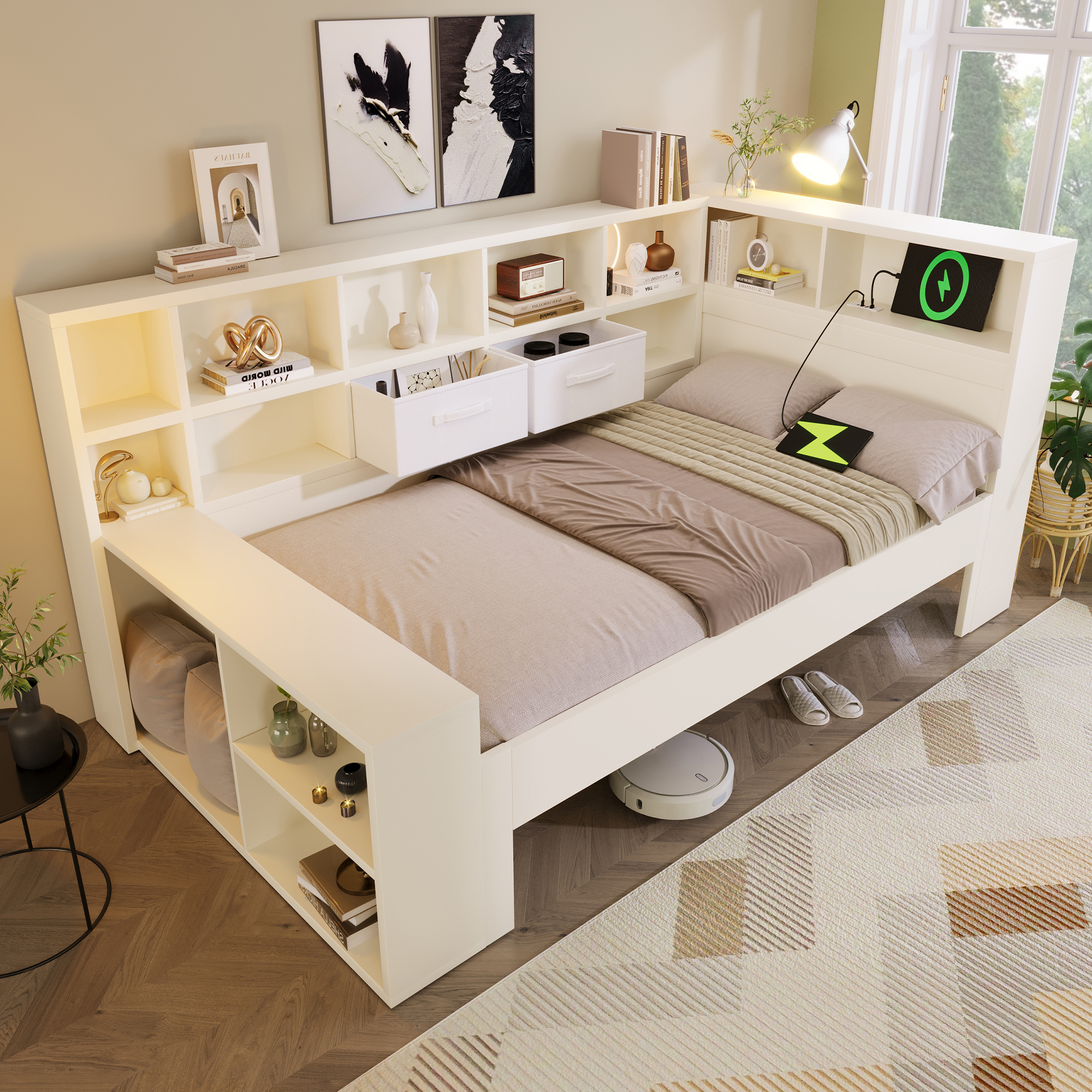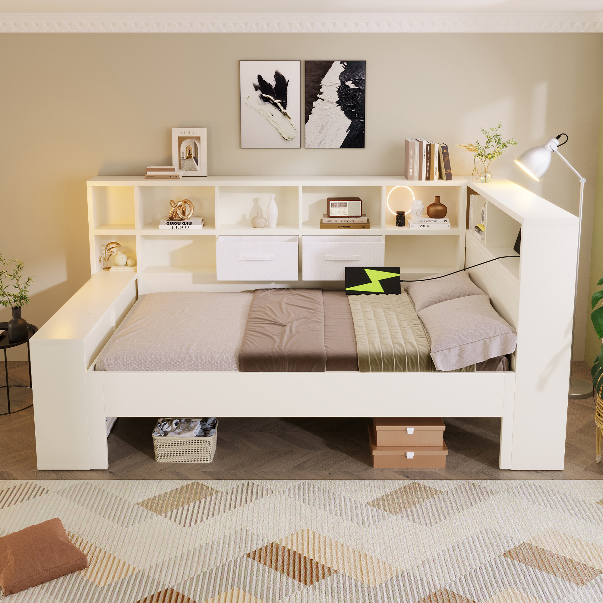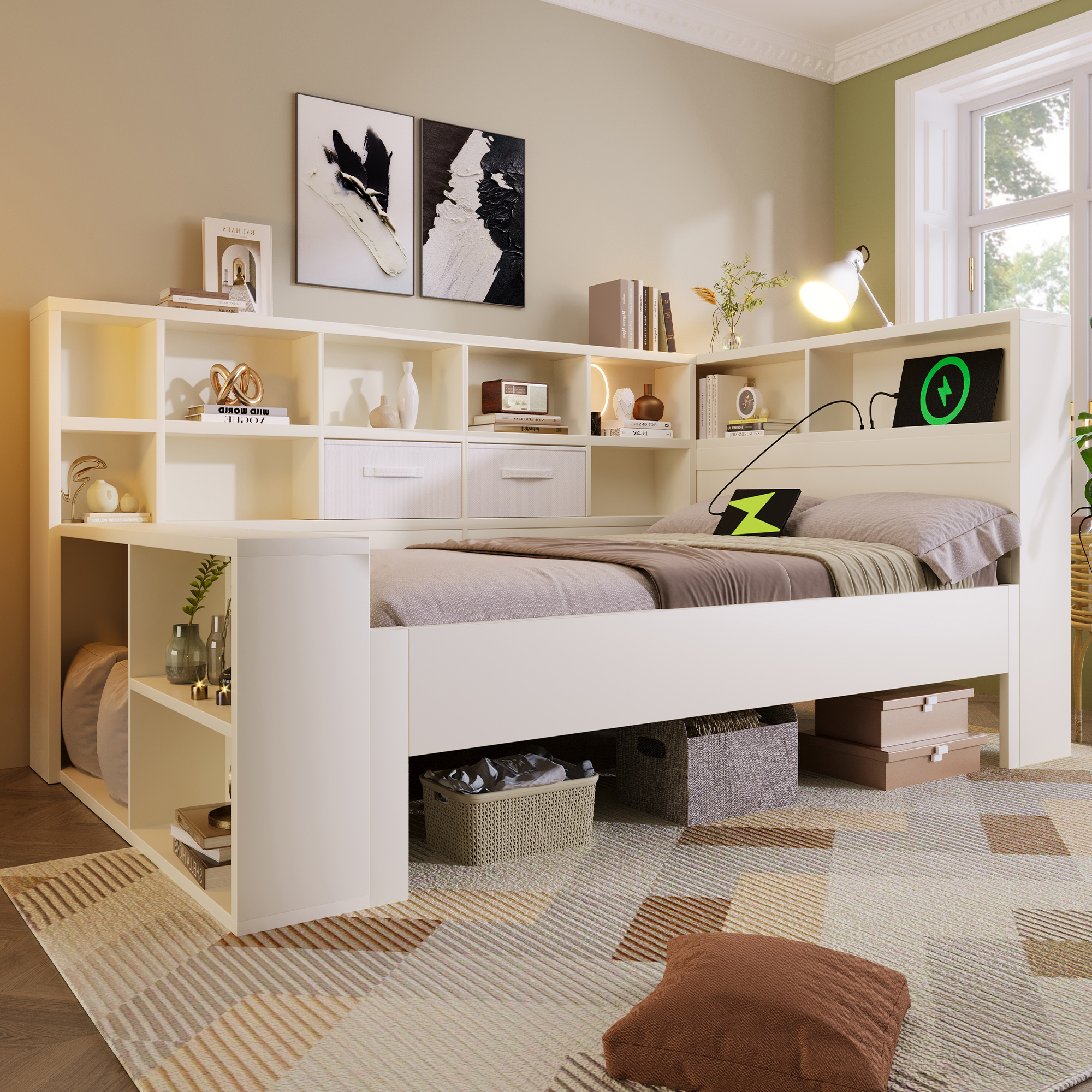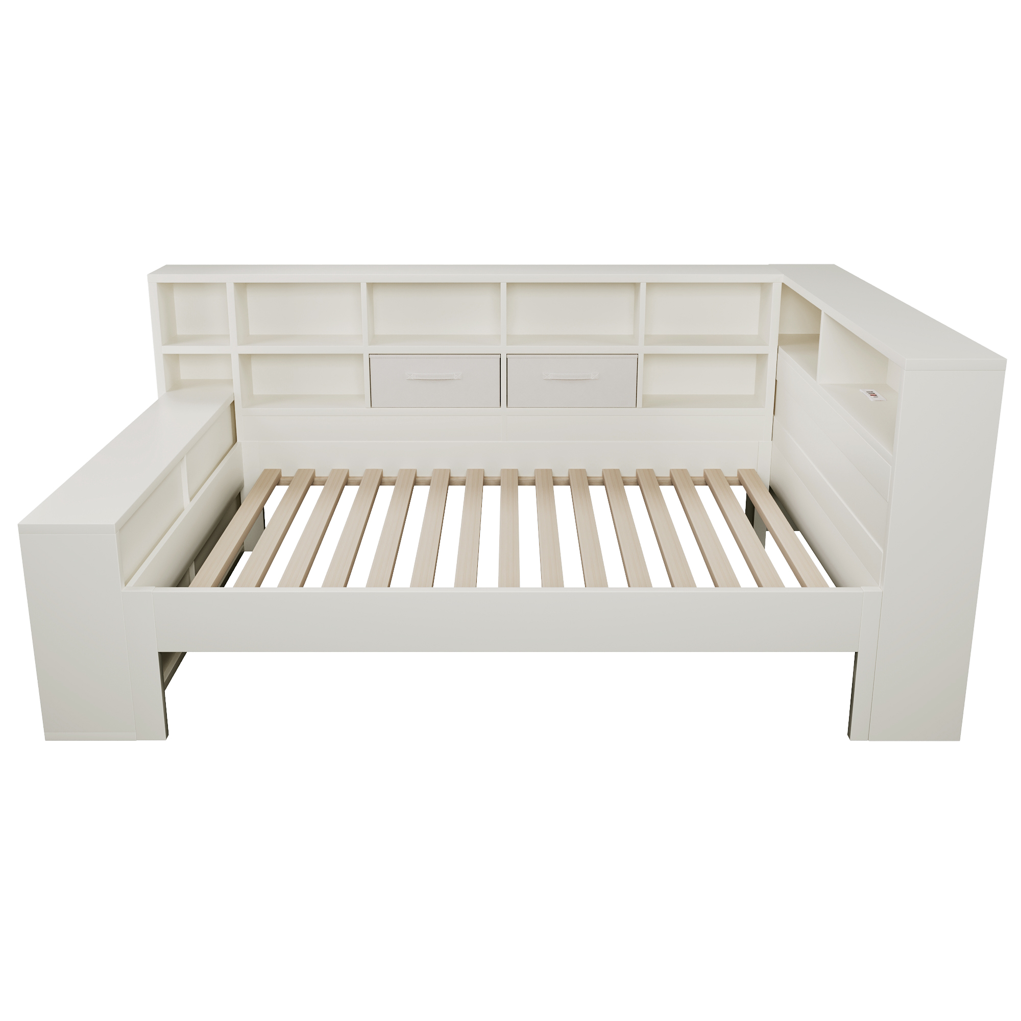 Product Name:Single Daybed with Storage & USB Type-C Port, 3FT Platform Bed with Bookcase, 90 x 190 cm Multi-functional Wooden Bed Frame for Living Room/ Bedroom, White (No Mattress)