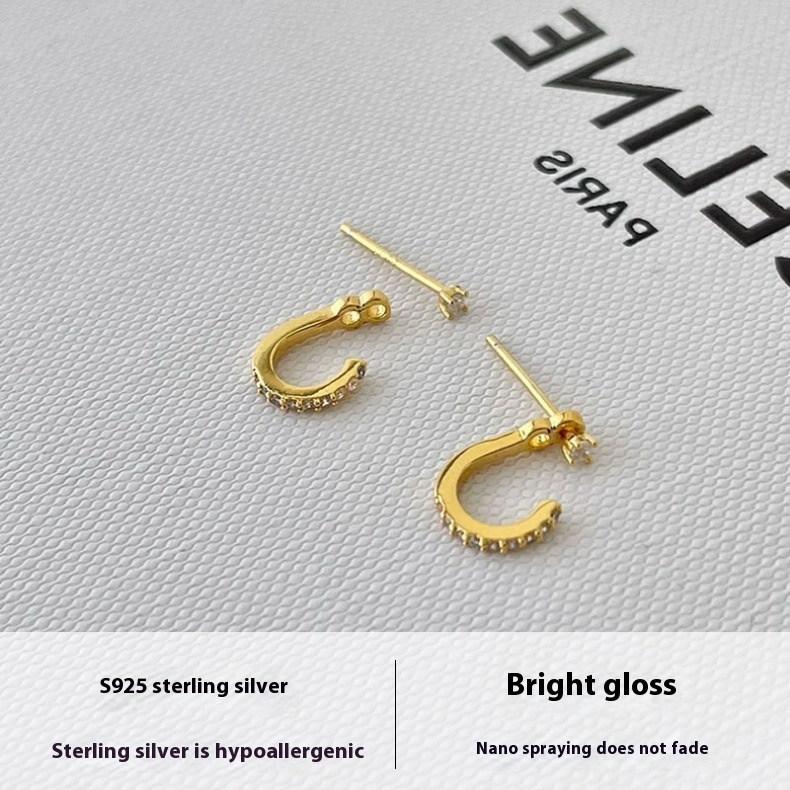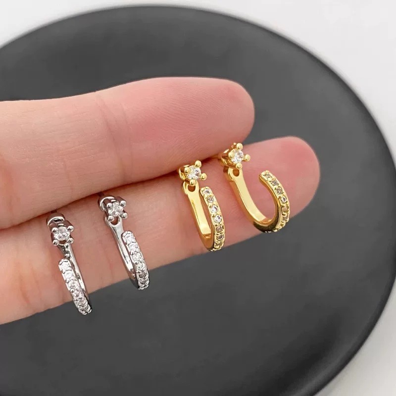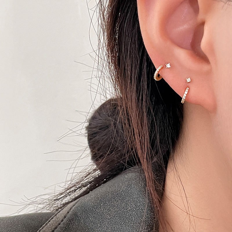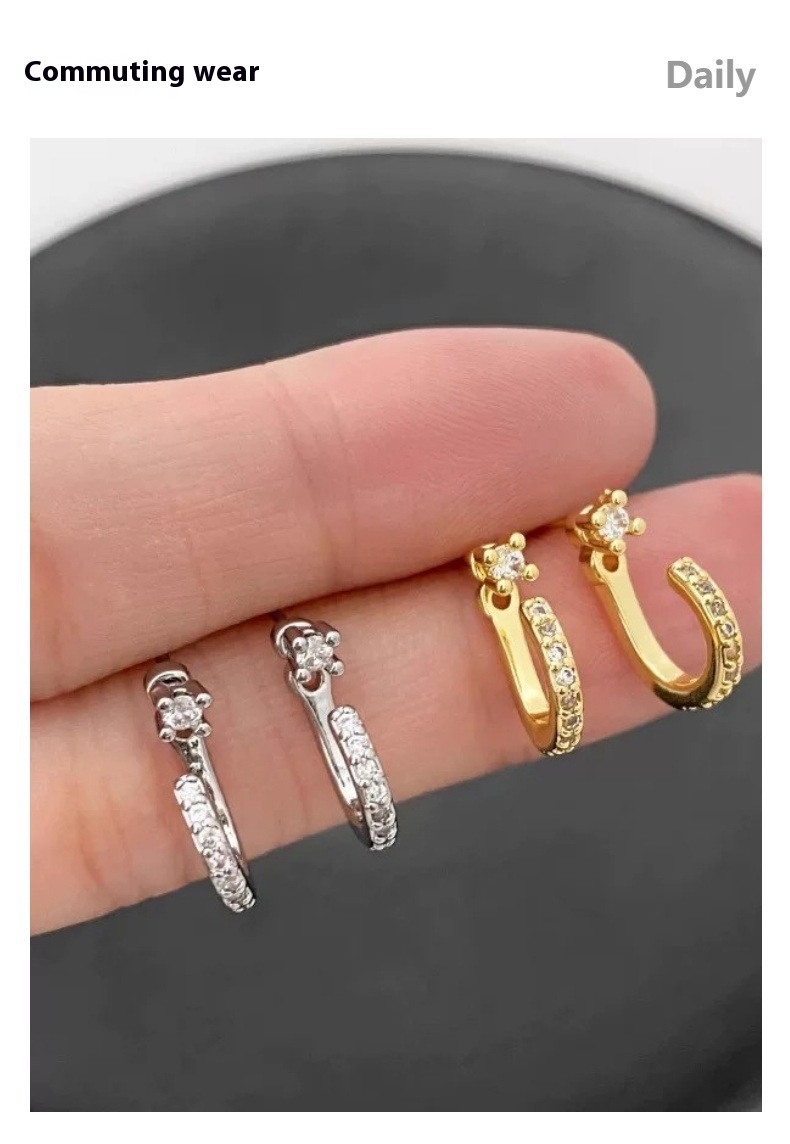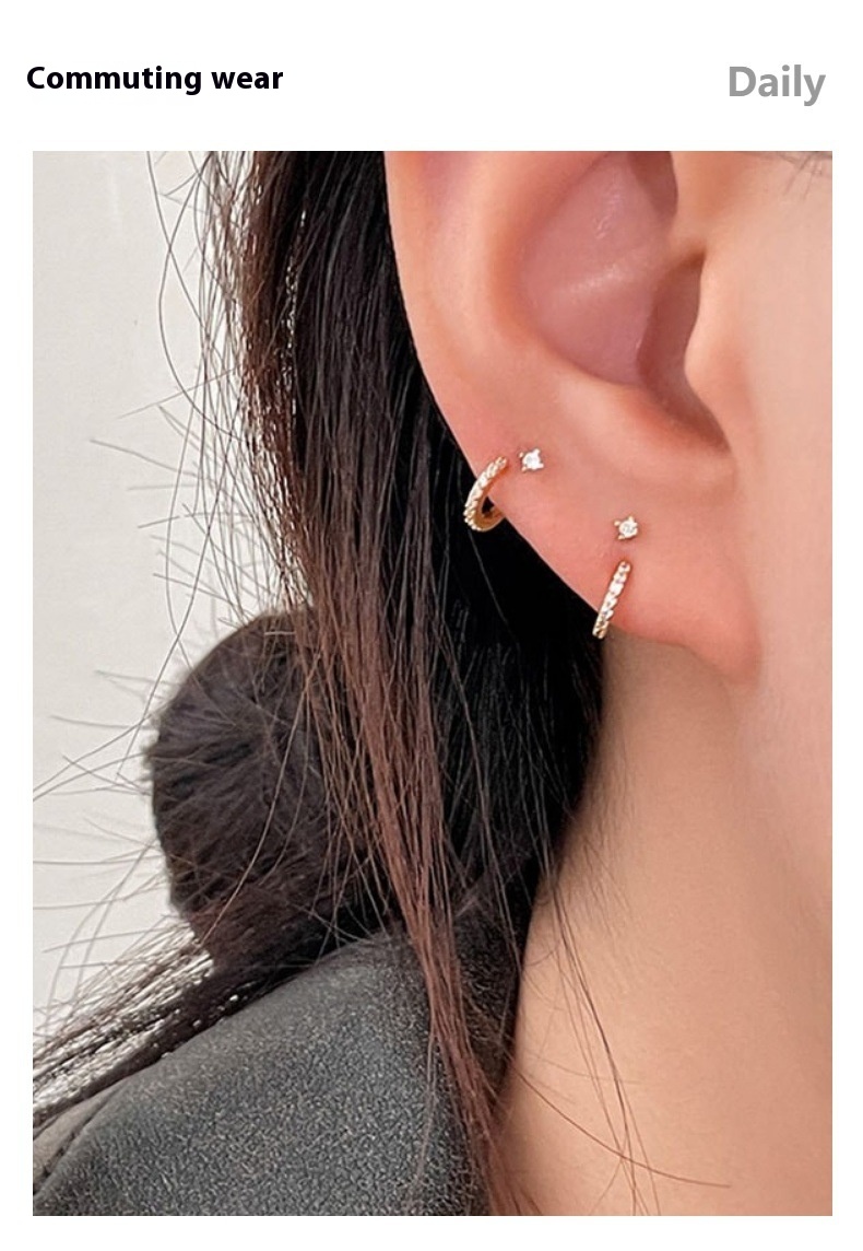 Color: single diamond rear hanging stud earrings silver, single diamond rear hanging stud earrings Yellow Gold