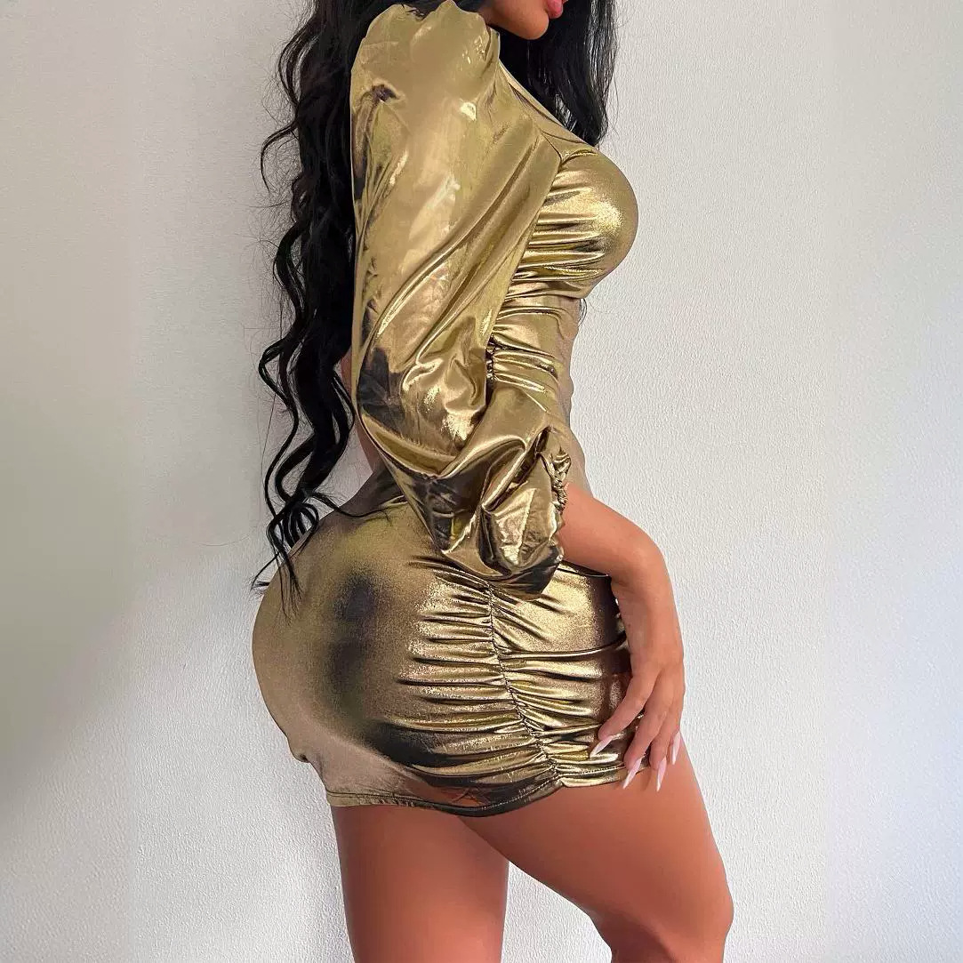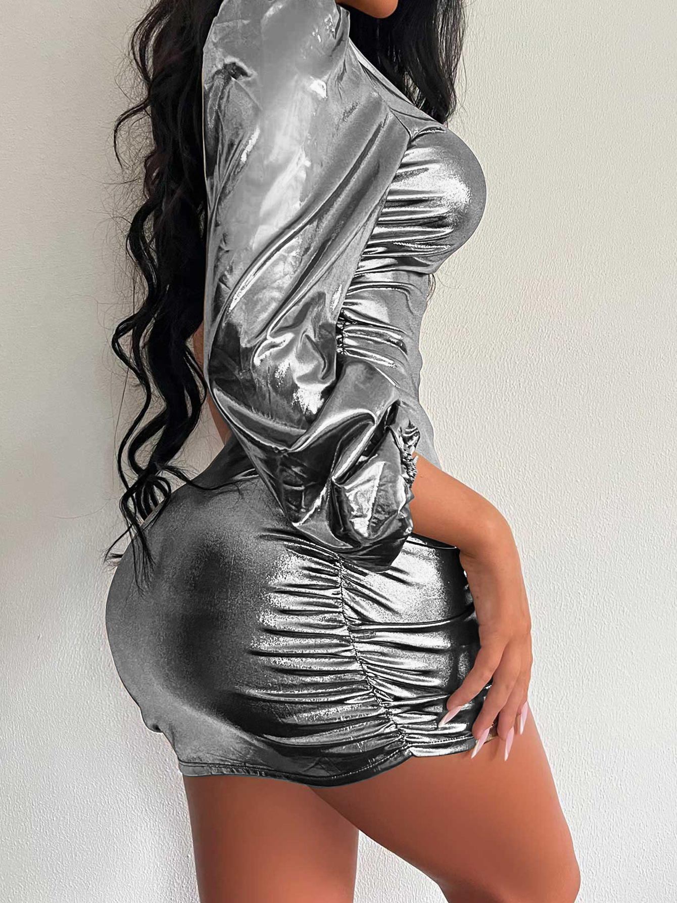 Single Shoulder Long Sleeved Cropped Dress