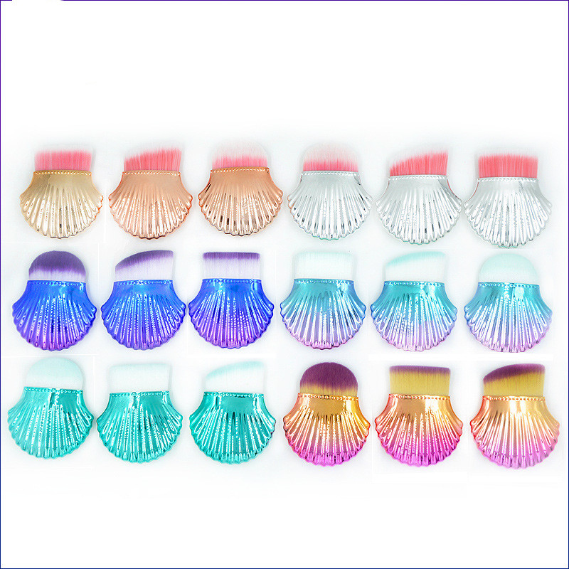 Name: Single small shell foundation brush (gold, light blue purple, gold powder, blue purple handle)