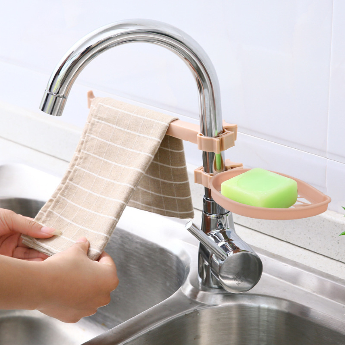 Install in the bathroom, the kitchen pipe to storage soap, the towel, etc.
