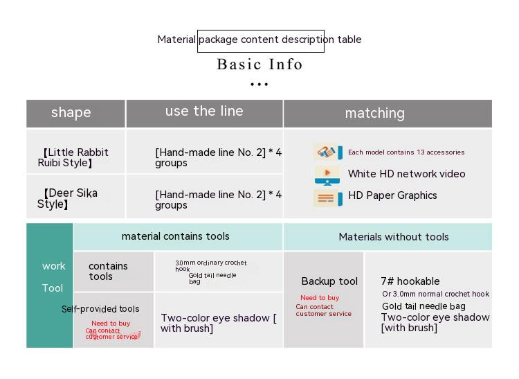 Color: The material pack does not include tools, while the material pack does not include tools