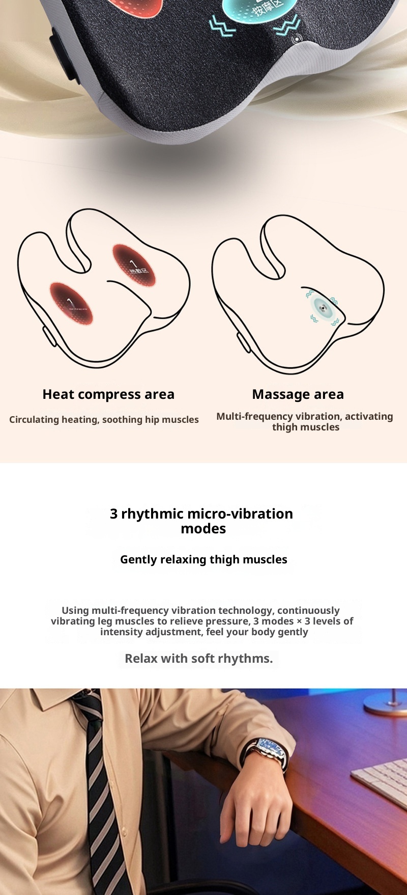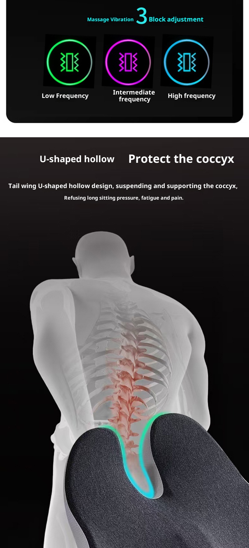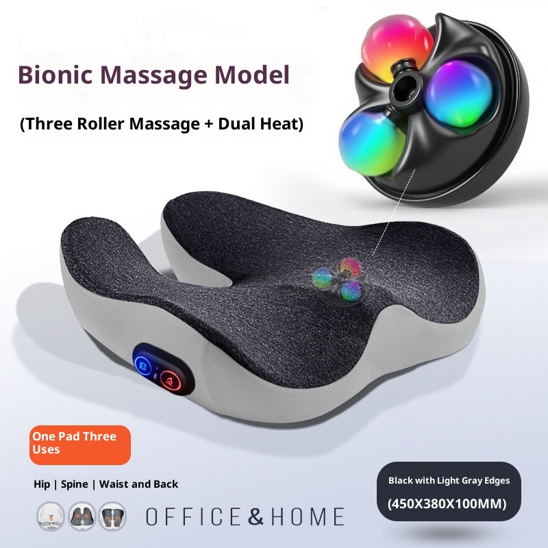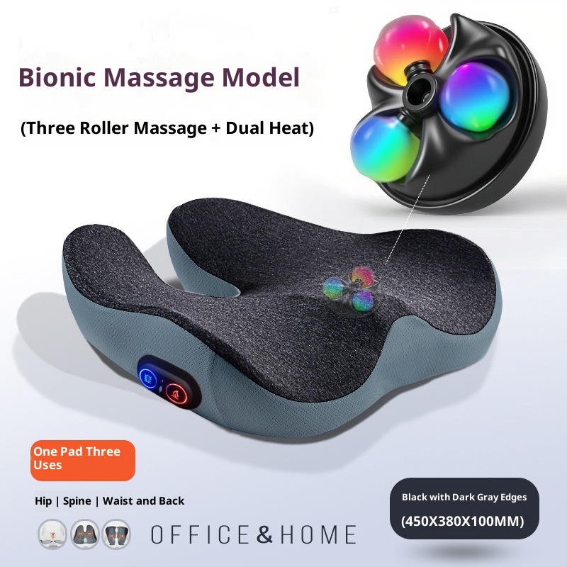 Upgraded Massage Version: Black (Dark Gray Border) — [Three-Roller Massage Pad + Heating Function],