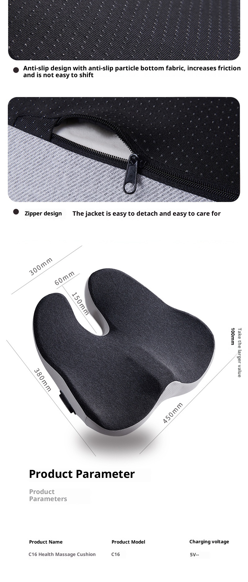 Upgraded Function Pad: Black (Light Gray Border) — [Vibration + Heating Function], Basic Version