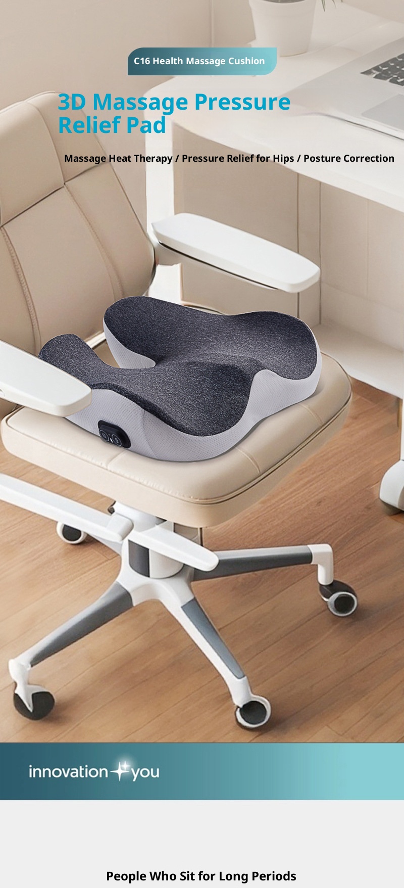Upgraded Massage Version: Black (Light Gray Border) — [Three-Roller Massage Pad + Heating Function],