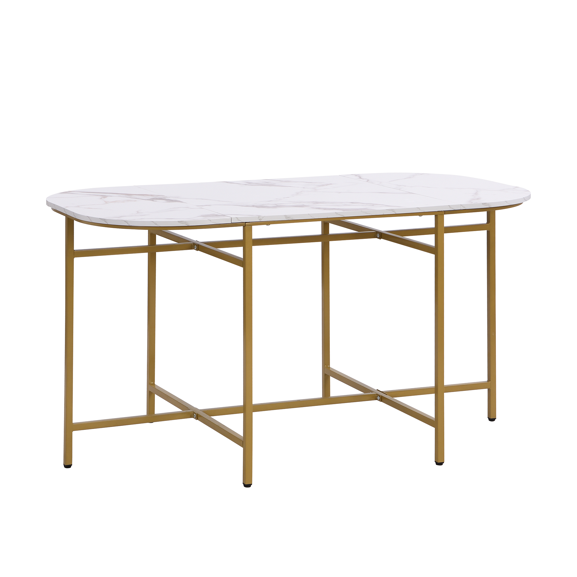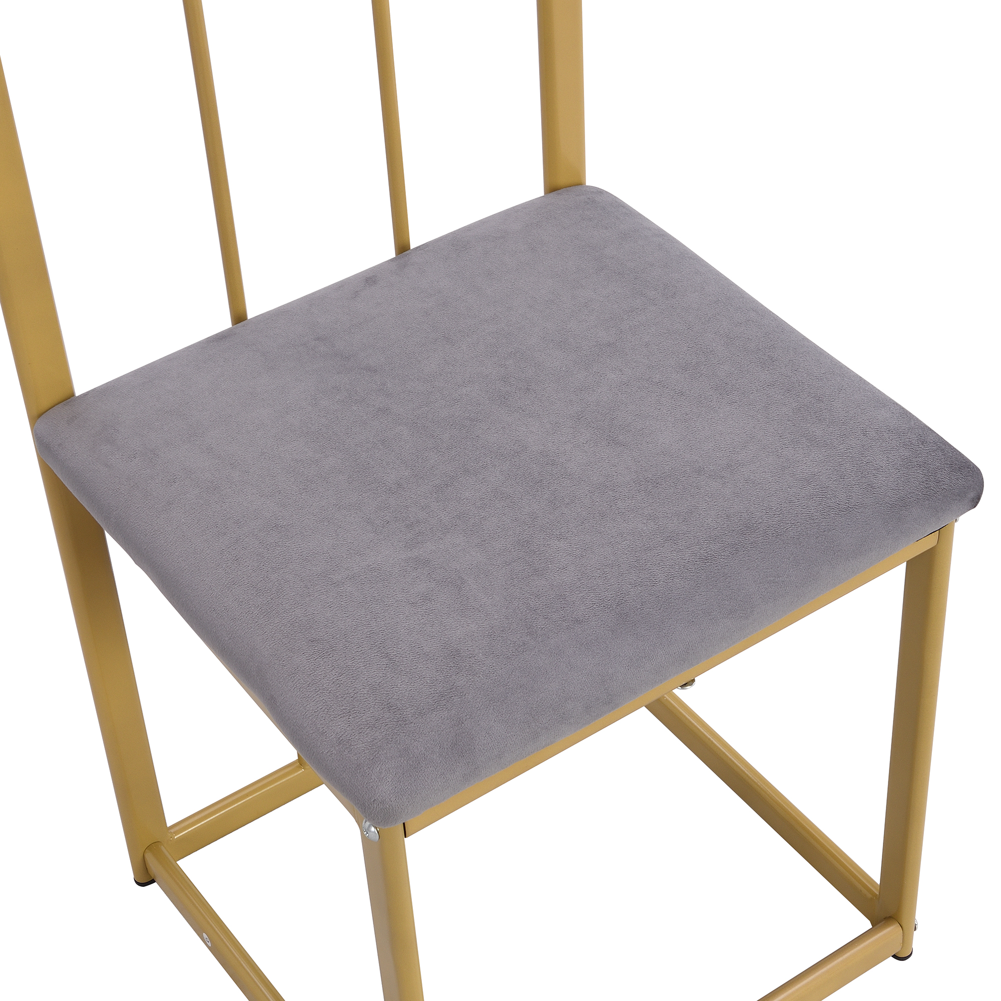 Product Name:Six-Chair Dining Table Set:(White Table, Chairs with Backrests and Gray Upholstery, Gold Iron Frame),Dining Room Table and Chair Set,Modern Dining Table Combination