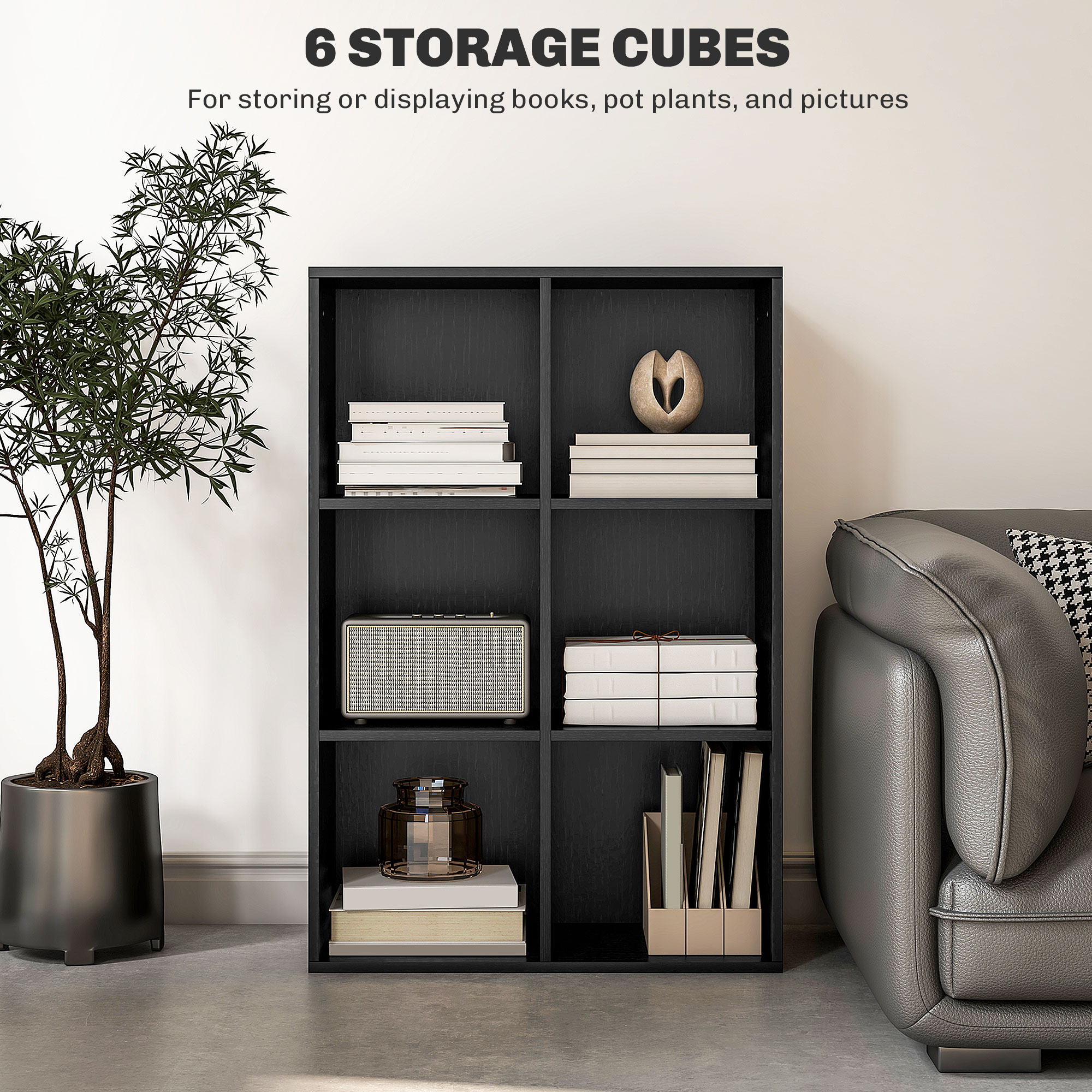 Discover the charm of 's three-tier bookshelf, a versatile shelf unit that fits snugly in any nook. With six open storage cubes, including three large and four small, this bookshelf promises easy organisation. Whether stood tall or laid long, its modern vibe refreshes any space, making it a stylish, functional pick for any book or decor enthusiast.