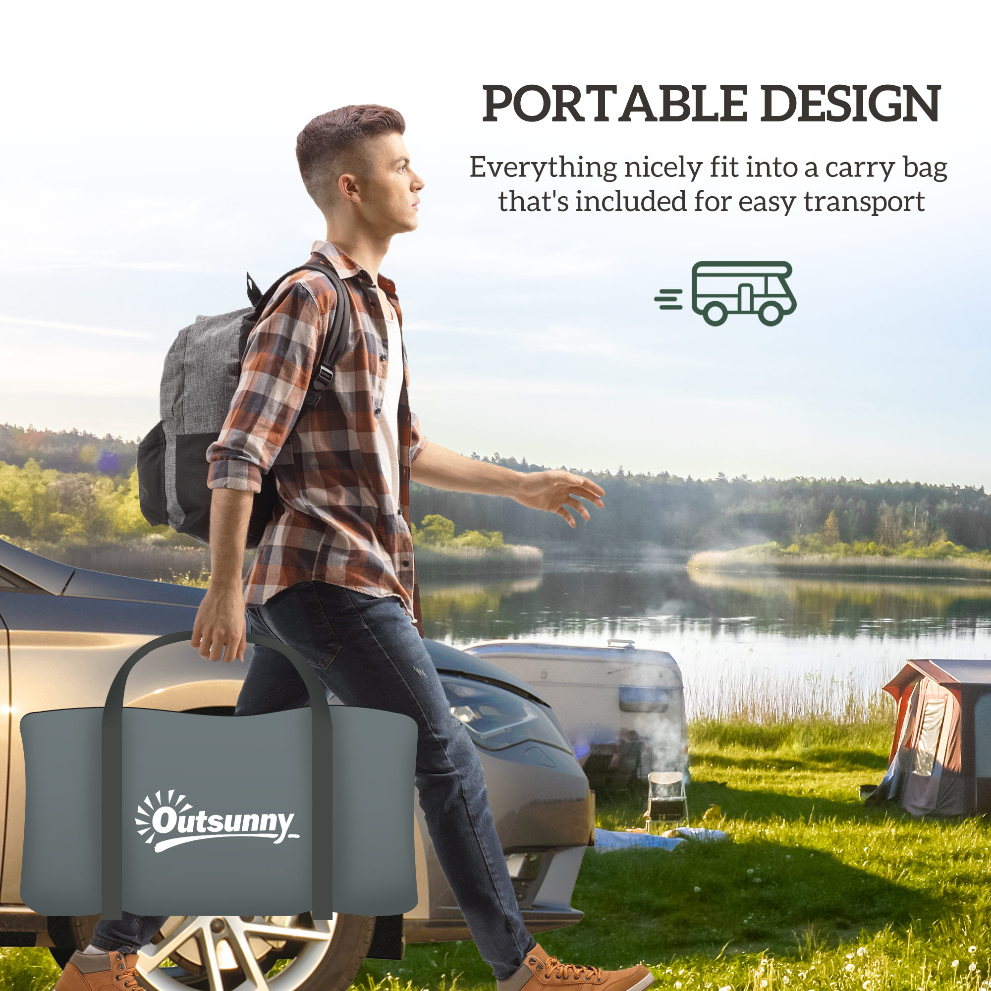 A safe and spacious shelter for camping trips, thanks to this six-man large family tent. The fabric shell offers 3000mm rain protection, with a top removable rainfly which shields the top from extra water. When dusk falls, the lantern hook adds a glow to your night-time retreat, whilst mesh windows ensure a breath of fresh air under the stars. Comes with guy ropes, ground stakes and carry bag.