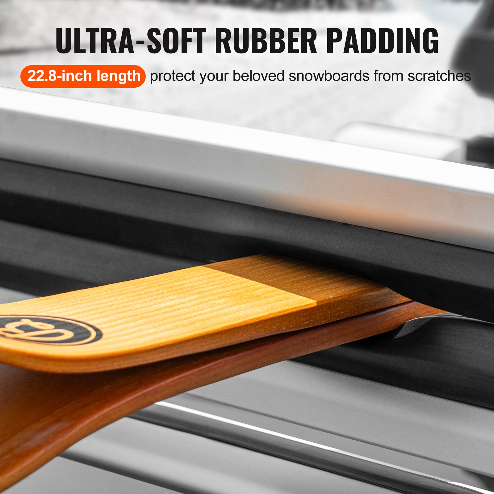 Stability on the Go: Keep your ski equipment secure with VEVOR ski roof rack. Our 22.8-inch extended and thick rubber padding effectively protects your beloved ski board from scratches and reduces vibration noise during transportation, ensuring a smooth and quiet ride.
