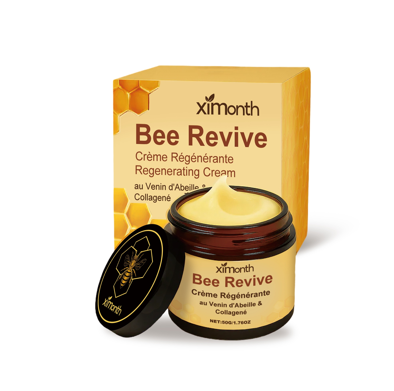 Ingredients: water, glycerin, mineral oil, glycerol stearate, 1,2-hexanediol, carbomer, triethanolamine, bee venom, collagen, hyaluronic acid.